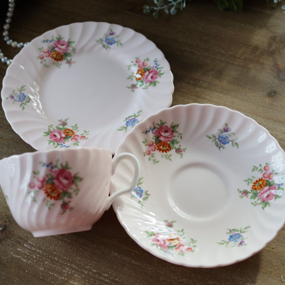 英国ミントン ロゼッタ パステルピンクが可愛いトリオA カップ&ソーサー F1
