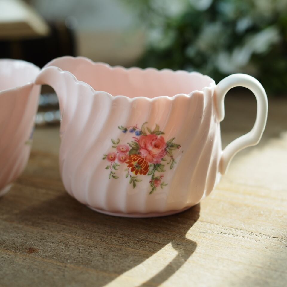 英国ミントン ロゼッタ パステルピンクが可愛いクリーマー&シュガーボウル F1