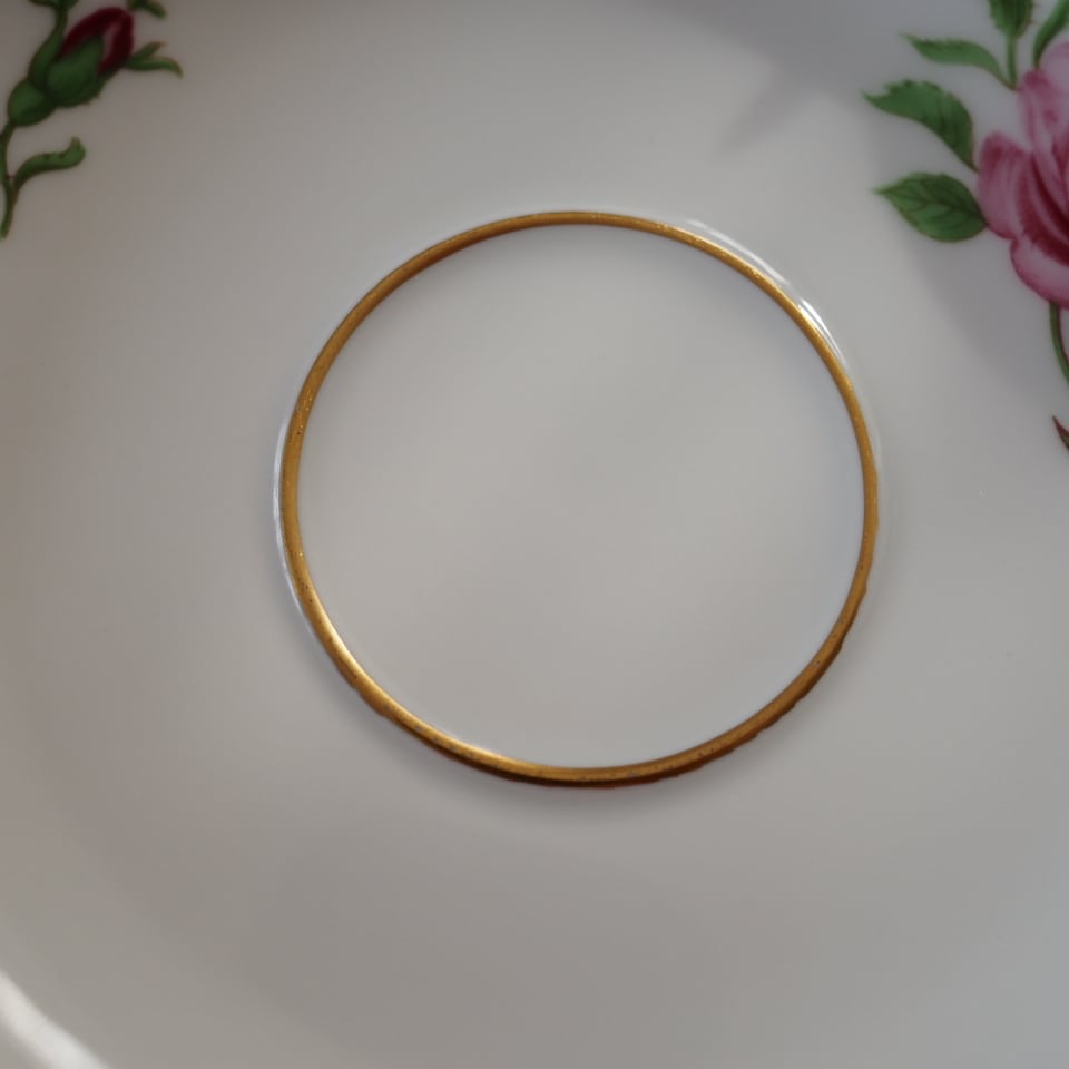 カップ縁の金彩の剝れ及びプレートの絵柄の剝れが僅かに見られますが、大変綺麗なお品です。未使用長期保管品です。
