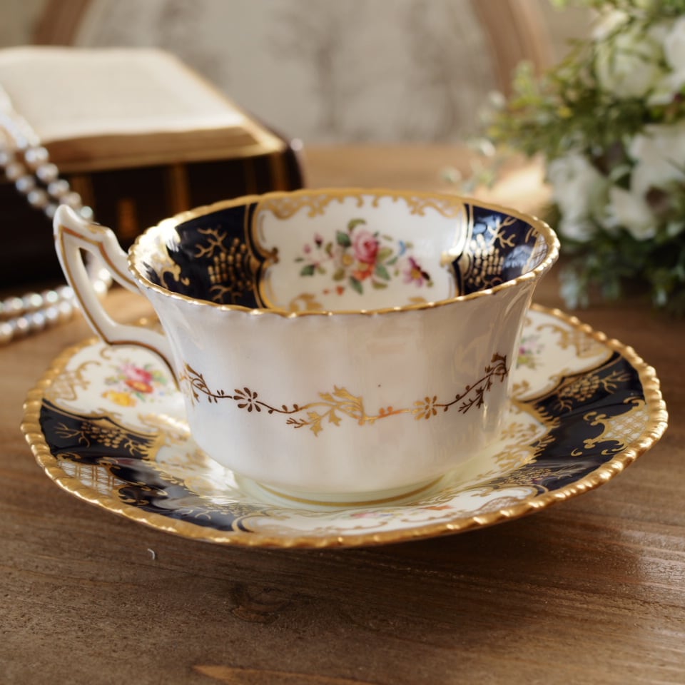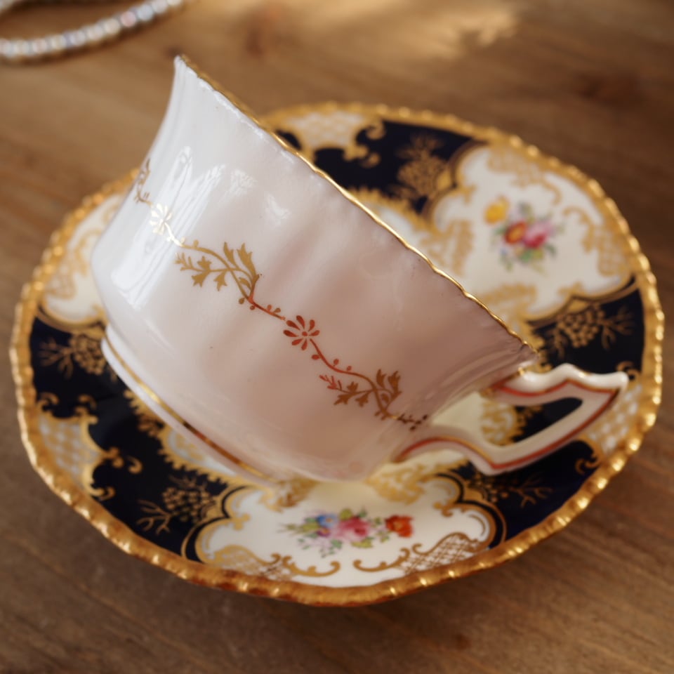 英国コールポート 希少 バットウィング・コバルト 大きめカップ&ソーサー F9