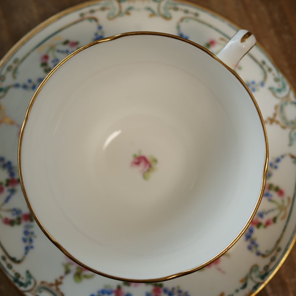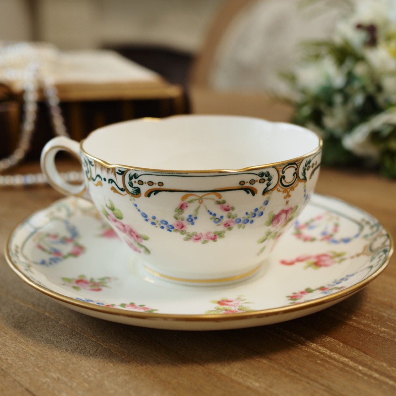 英国ミントンminton 薔薇と小花のガーランドが素敵なカップ&ソーサー 大きめサイズ F1
