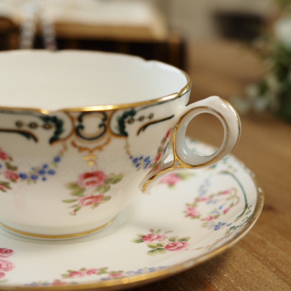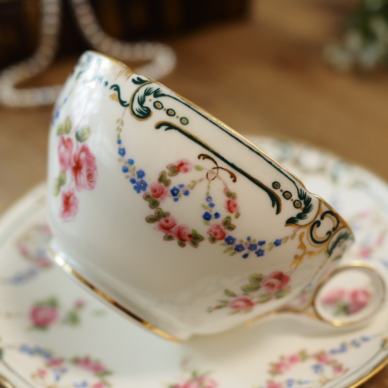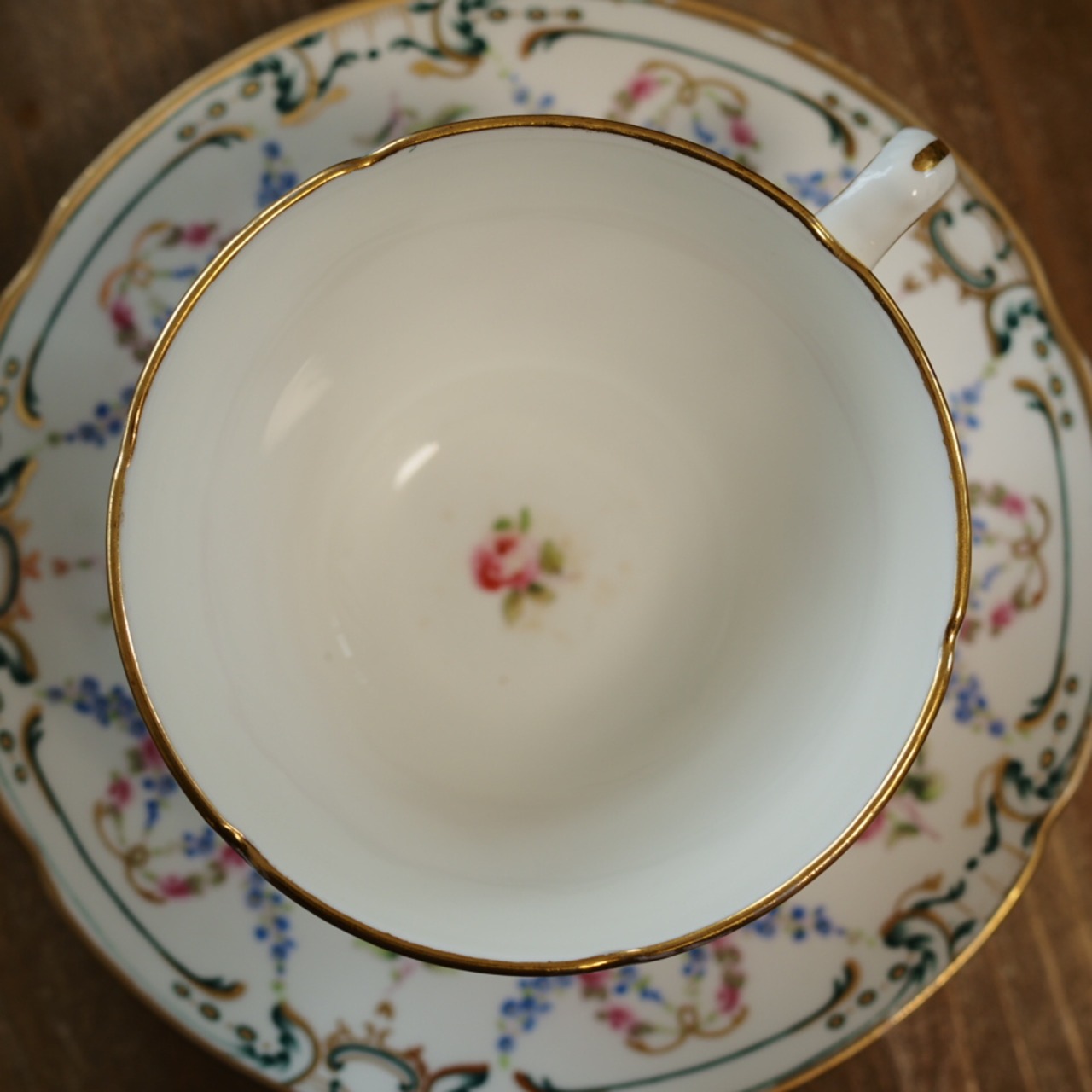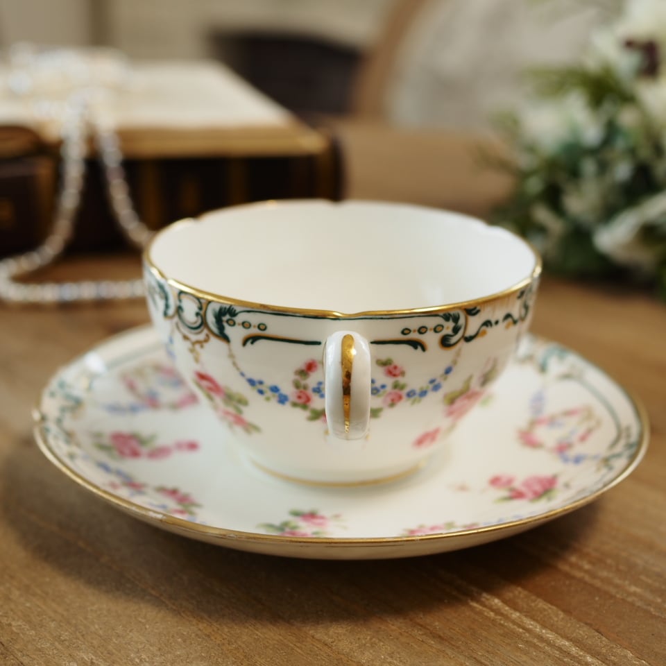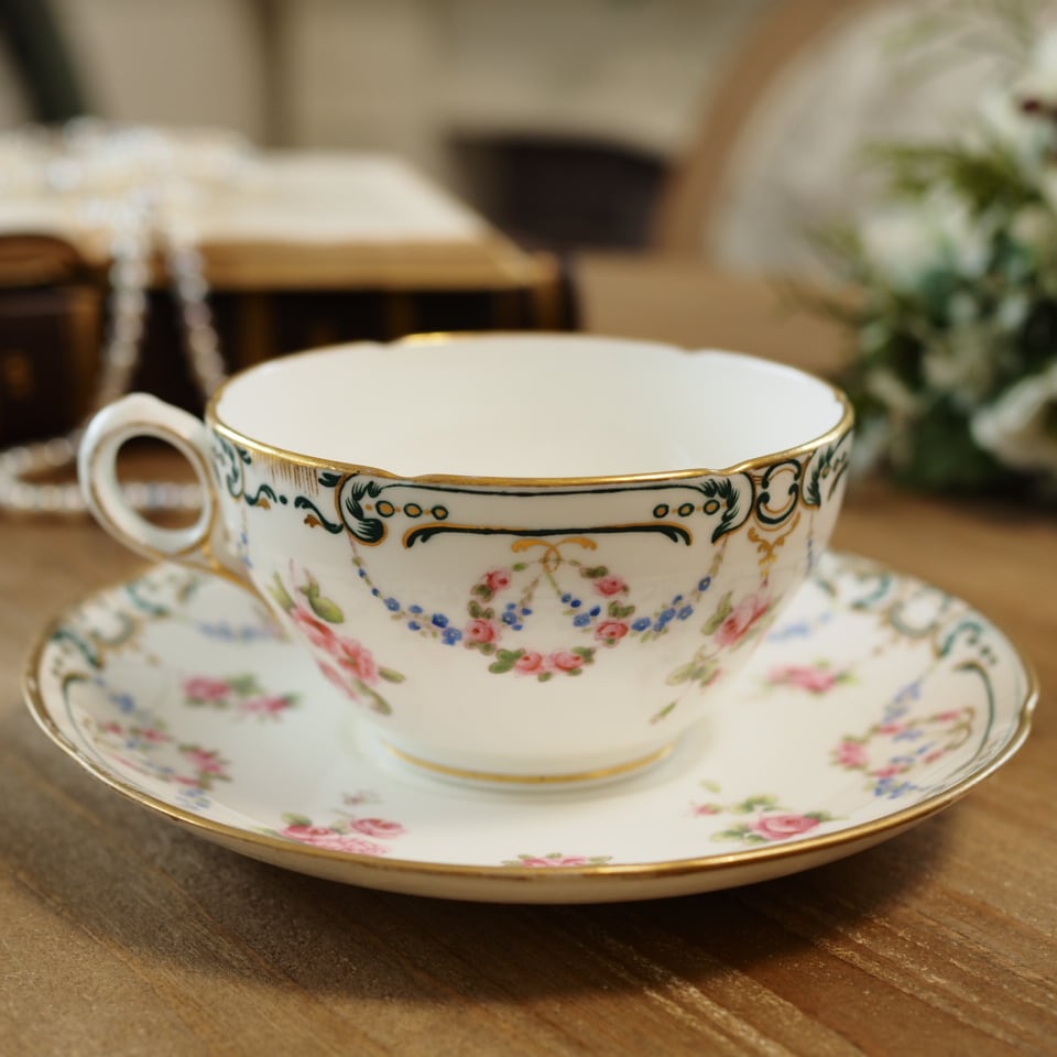 英国ミントンminton 薔薇と小花のガーランドが素敵なカップ&ソーサーB 大きめサイズ F1