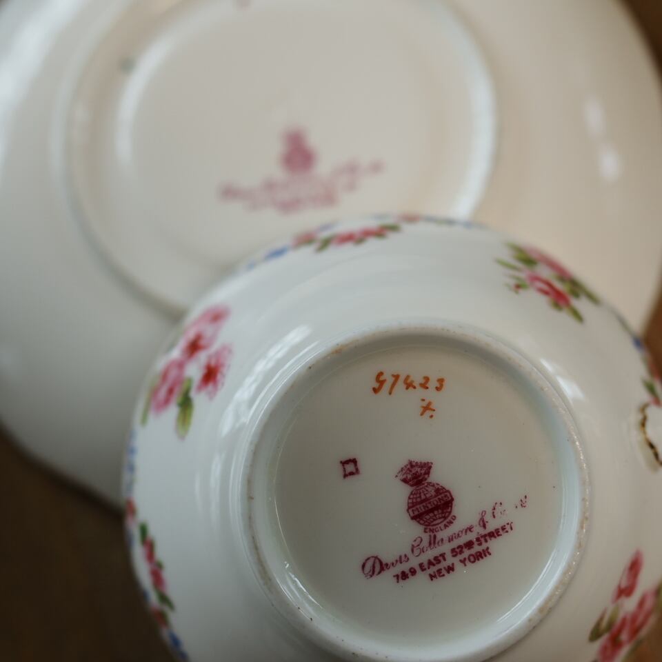 縁やハンドルには金彩が施され、甘さの中に気品を感じるミントンらしいデザインです。