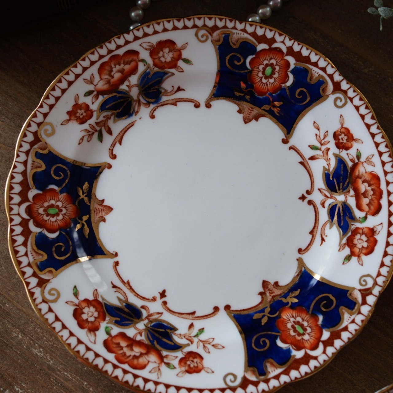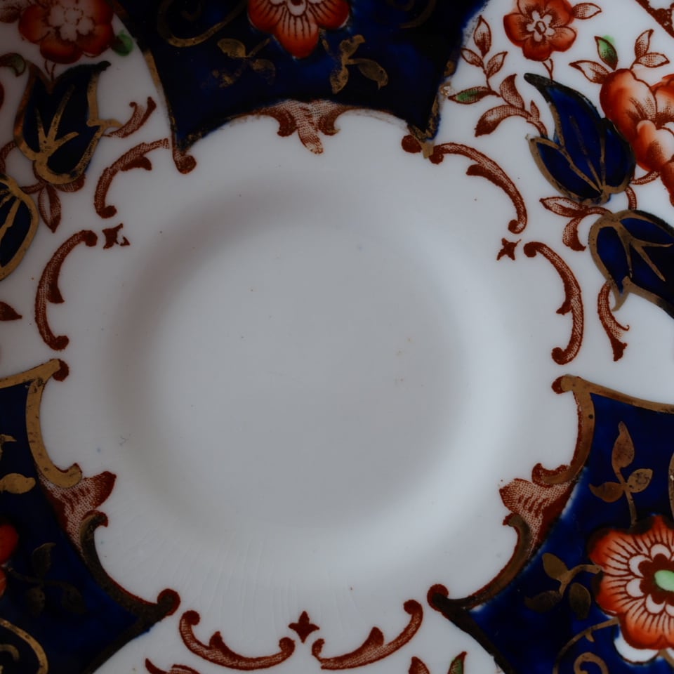 1900年代初頭のタスカン窯が放つ、この鮮烈なイマリ様式は、ブランドのイメージを覆すほど力強く希少な一客です。伝統を破壊し、新たな時代を先取りしたかのような多角的なシェイプは、まさに劇的な変化を告げる【死神】の象徴。現代まで遺されたこの重厚な美しさは、当時の高級ラインのみが持つ特別な格を宿しています。