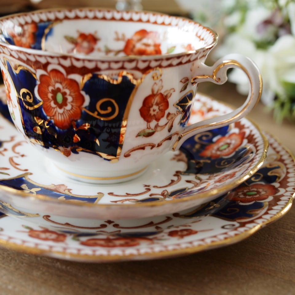 【 タロット13 死神 】英国TUSCAN 戦間期イマリ柄が印象的なトリオ カップ&ソーサー イギリス陶磁器