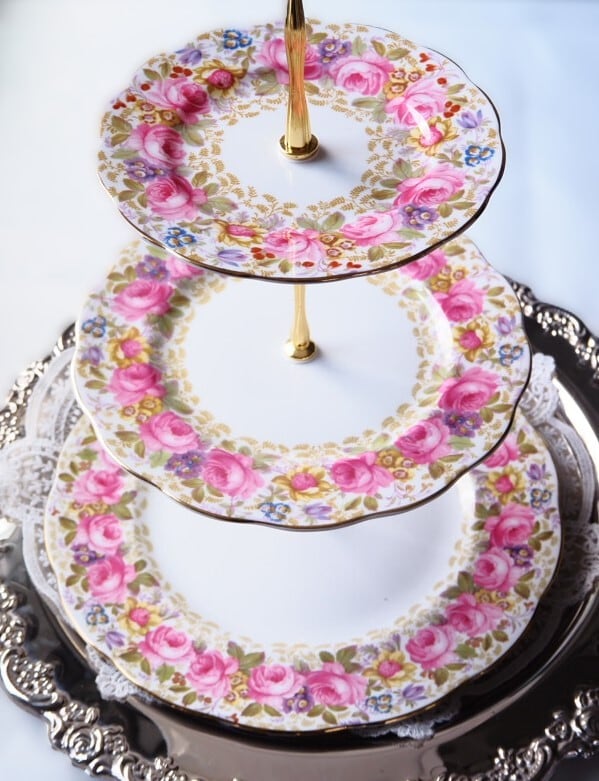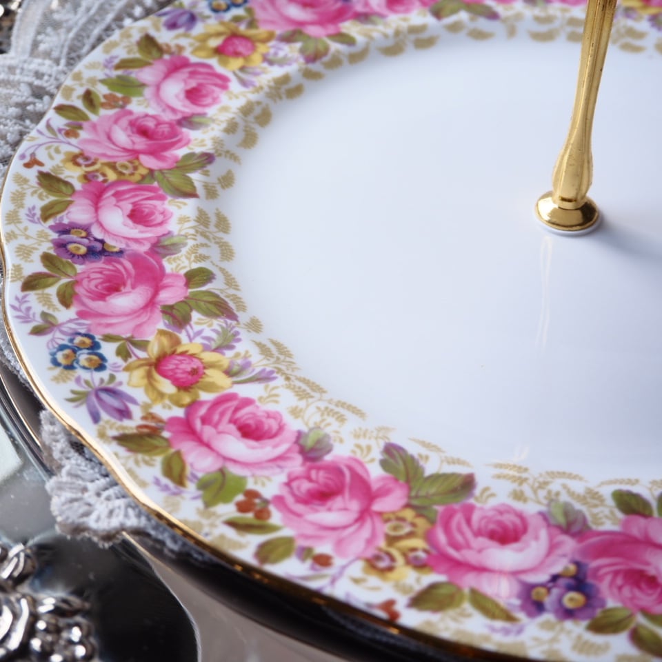 溢れんばかりの薔薇が咲き誇るこのスタンドは、テーブルに置くだけで一瞬にしてお茶会の主役となる圧倒的な存在感です。
