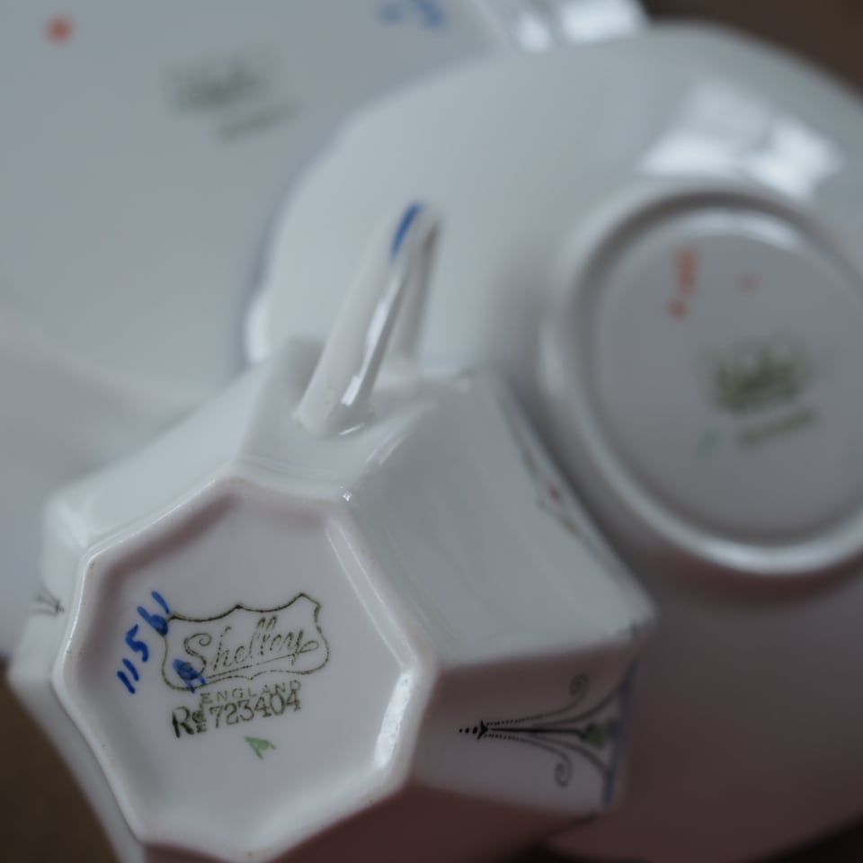 時代により、Foley、Wileman(1872-1925)、Shelley(1925-1966)と経営者の名字により窯名が異なります。イギリスを代表する美しい磁器を作り出していました。