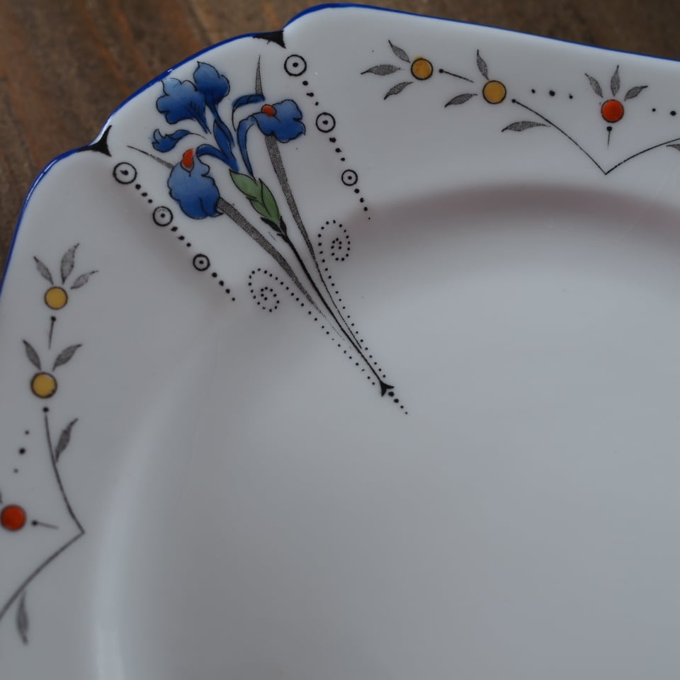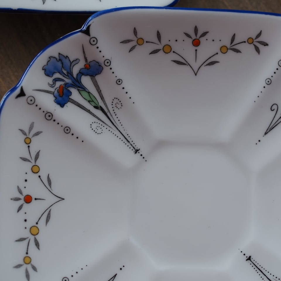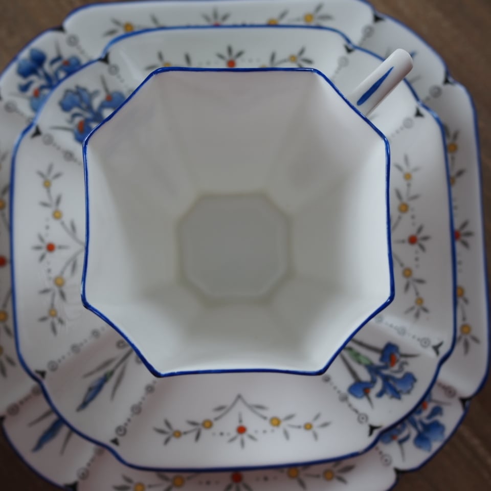 こちらのクイーンアンシェイプは、シェリー窯の中でも定評があり、中でも「アイリス」の絵柄は大変人気がございます。