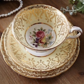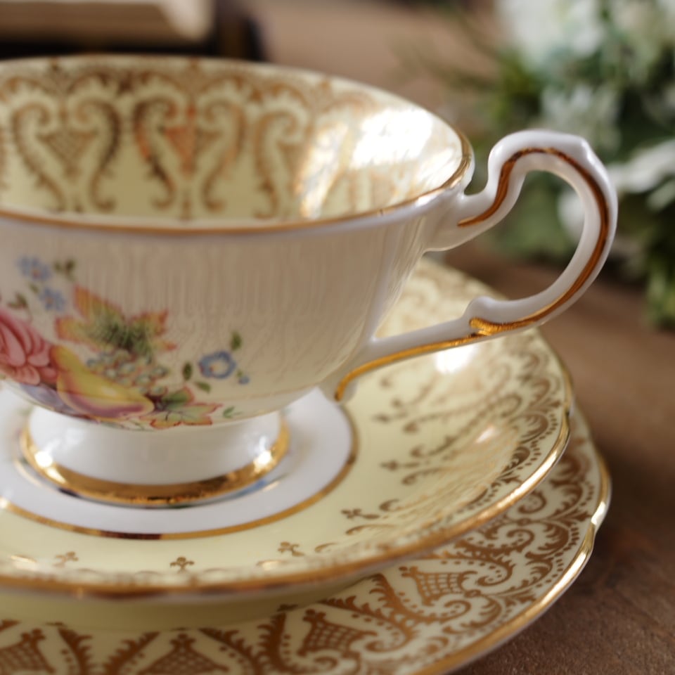 ~英国パラゴン 金彩果実文 フルーツ絵柄トリオ イエロー~