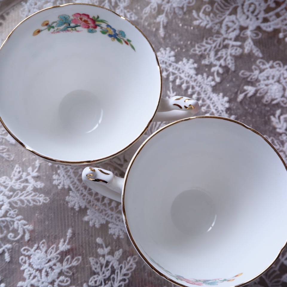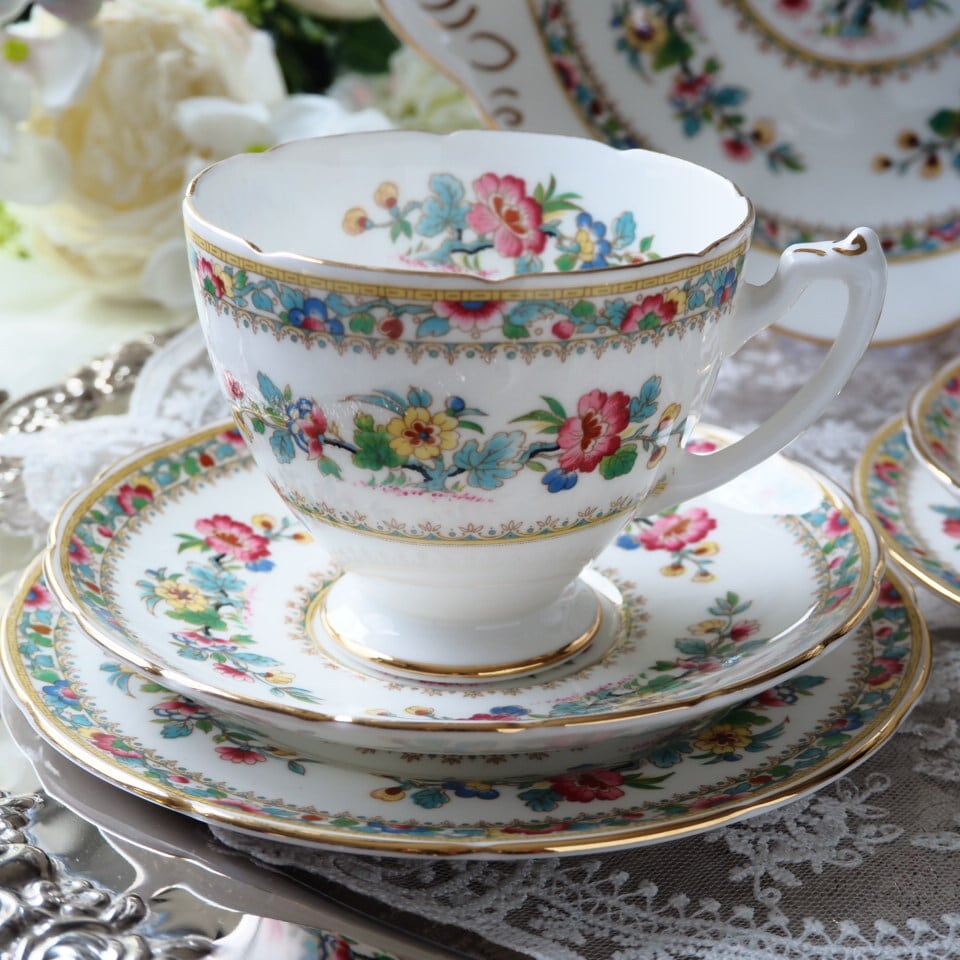 繊細な金彩と色とりどりの花模様が調和したデザインは、華やかさと気品を兼ね備え、ティータイムを特別なひとときへと導いてくれます。