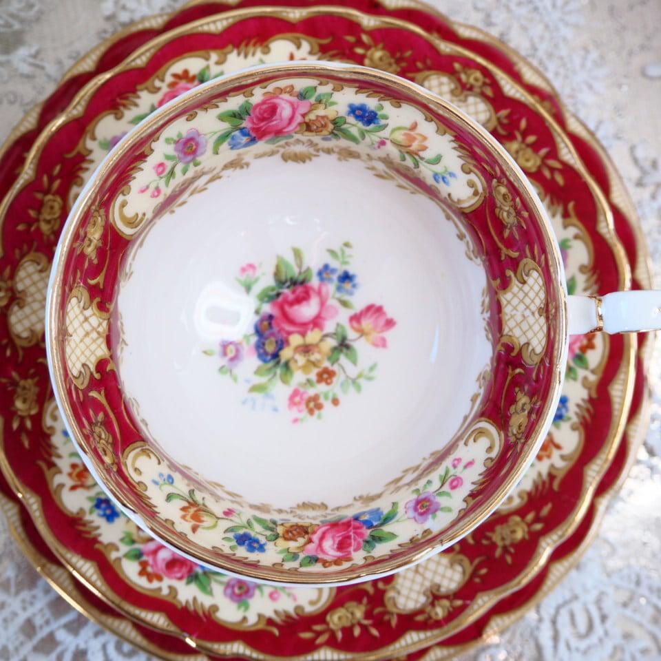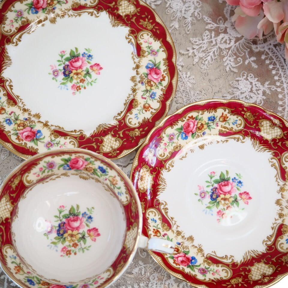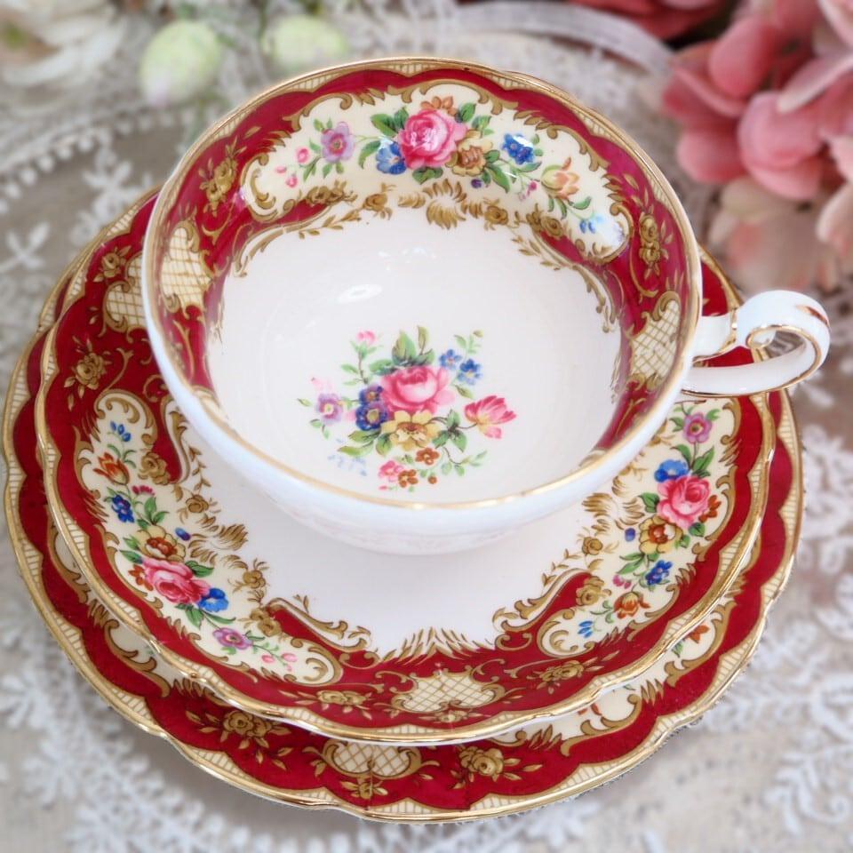 英国パラゴン ポンパドールpompadourレッド トリオ カップ&ソーサー F3