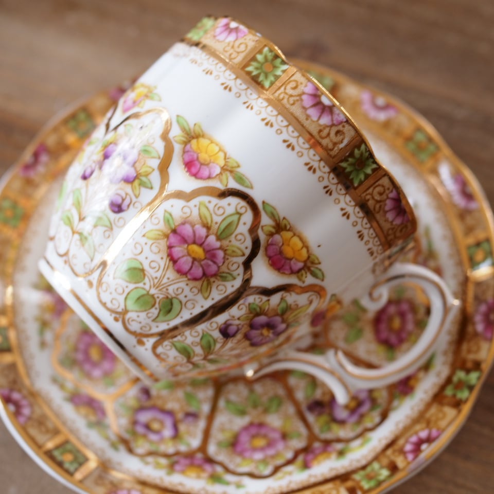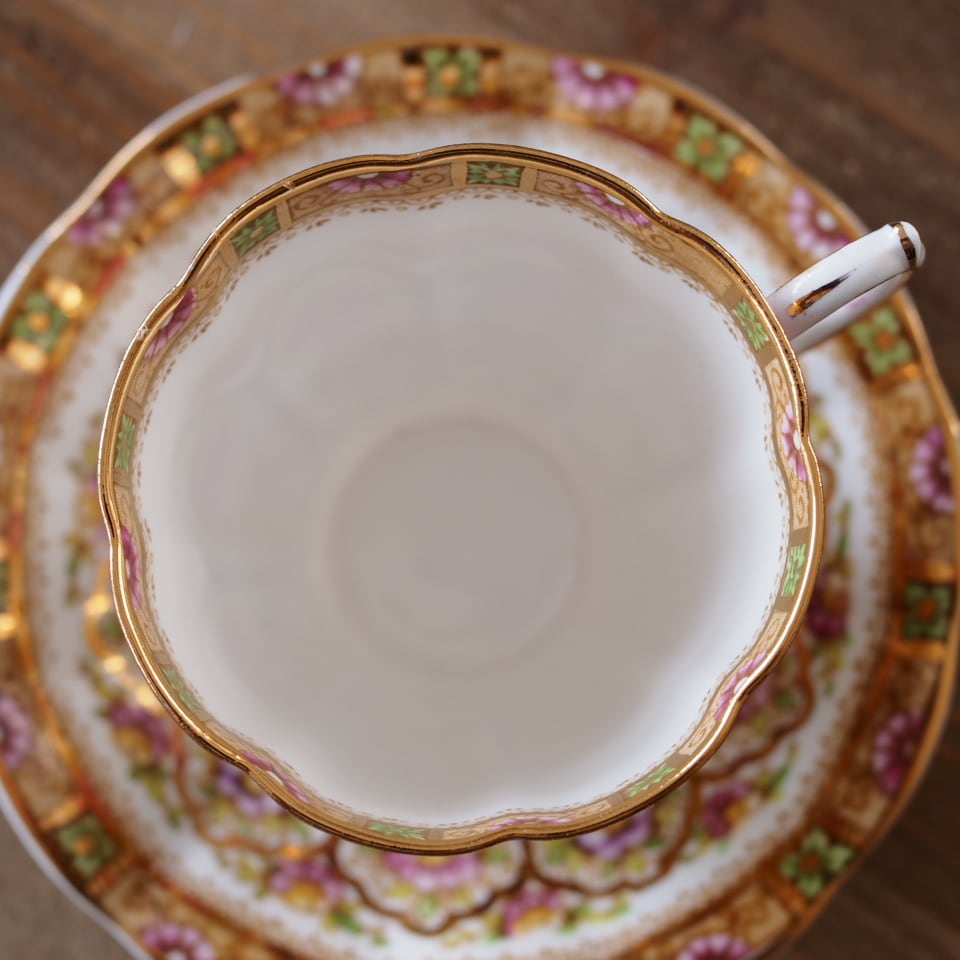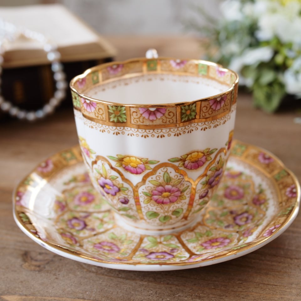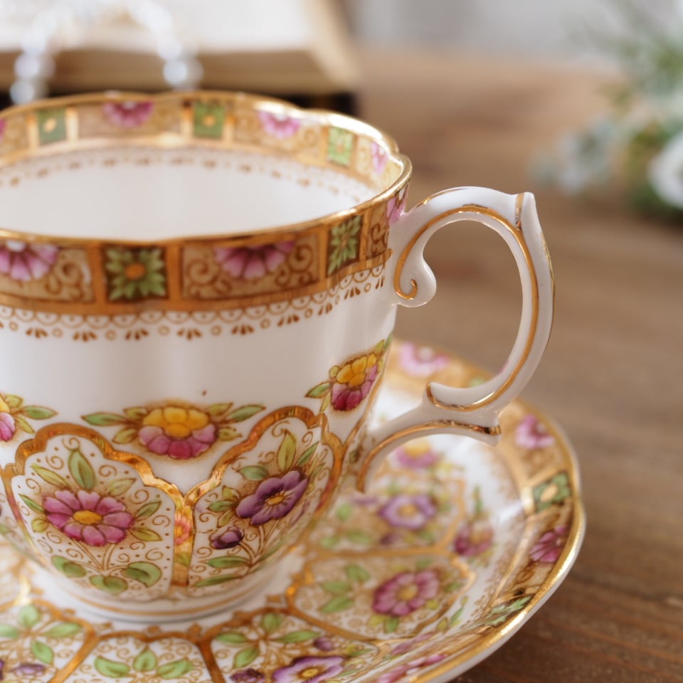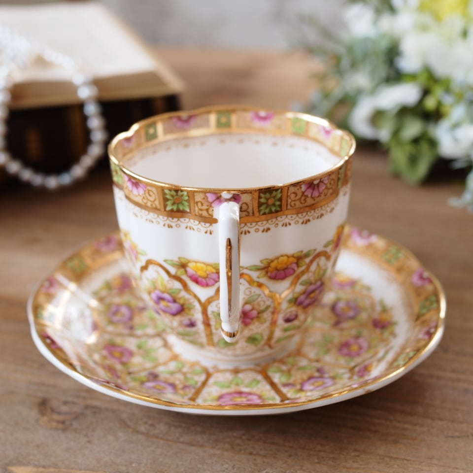 英国ロイヤルアルバート COURT カップ&ソーサー Bone China 金彩フラワー