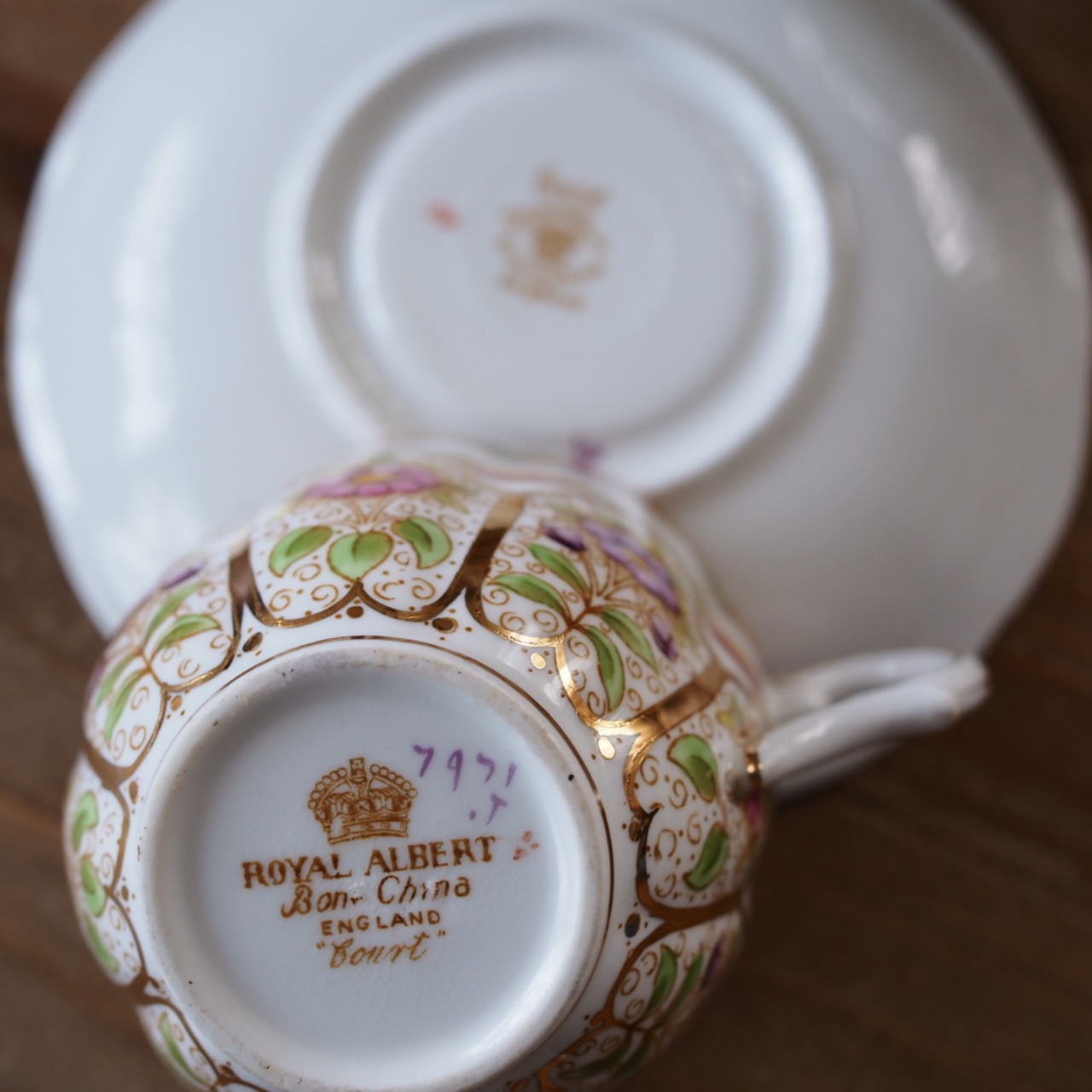 バックスタンプに「Bone China England COURT」とあり、