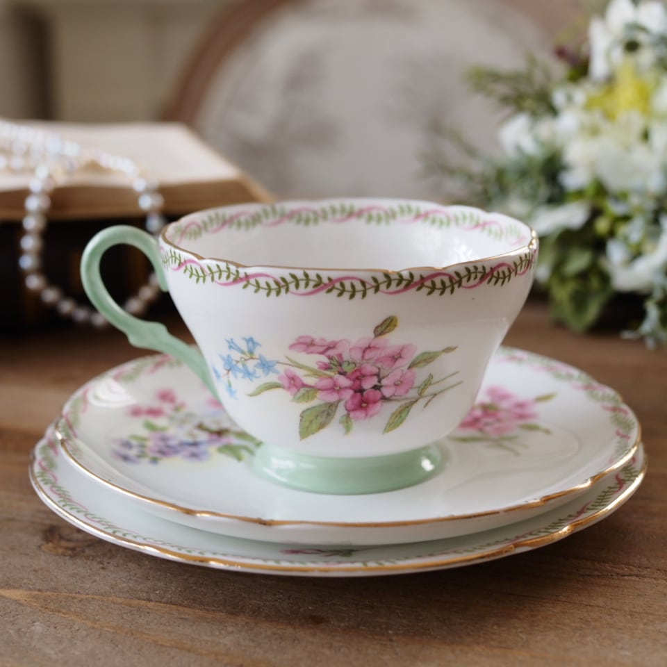 【美品】シェリーSTOCKSストックス トリオ カップ&ソーサー イギリス ビンテージ F9