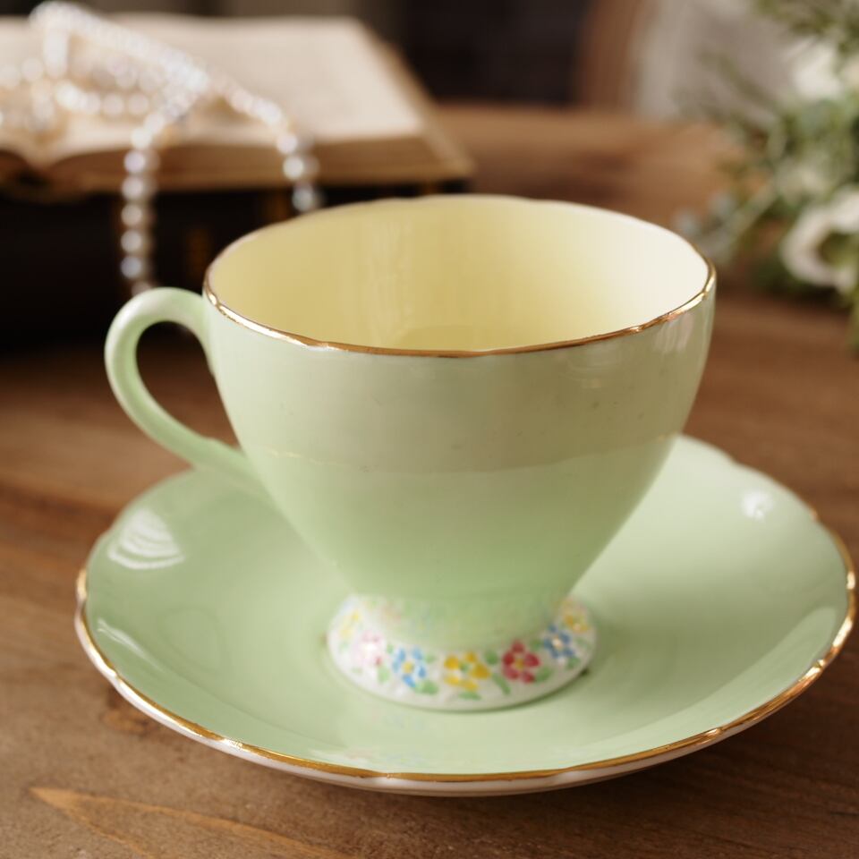 英国FOLEY パステルグリーン可愛らしい高台が魅力のカップ&ソーサー