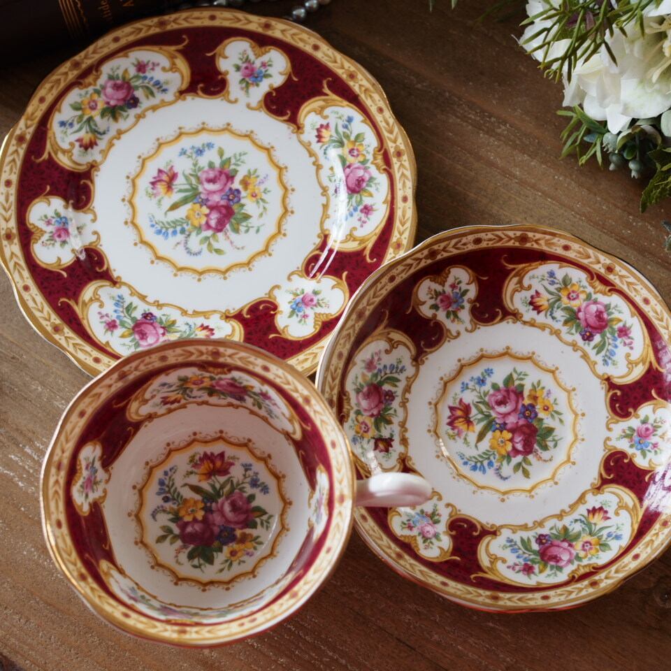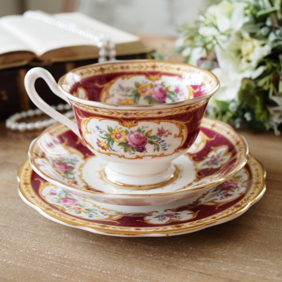 英国ロイヤルアルバート レディハミルトン希少シェイプ トリオ カップ&ソーサー
