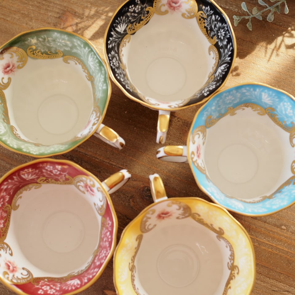 ボーンチャイナカップ&ソーサー色違い5客セットです。