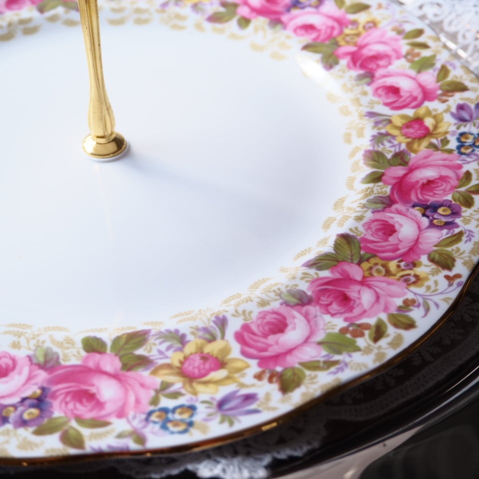 溢れんばかりの薔薇が咲き誇るこのスタンドは、テーブルに置くだけで一瞬にしてお茶会の主役となる圧倒的な存在感です。