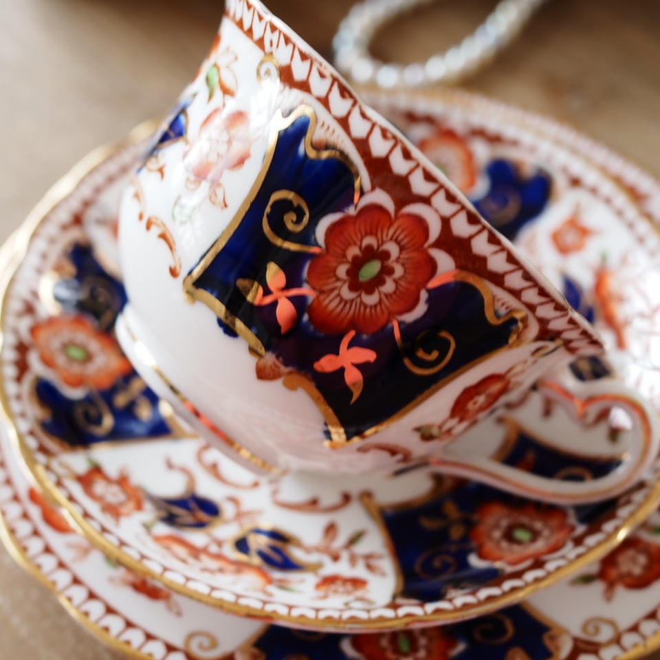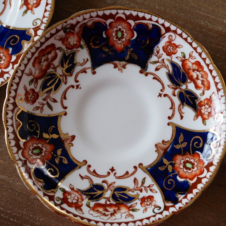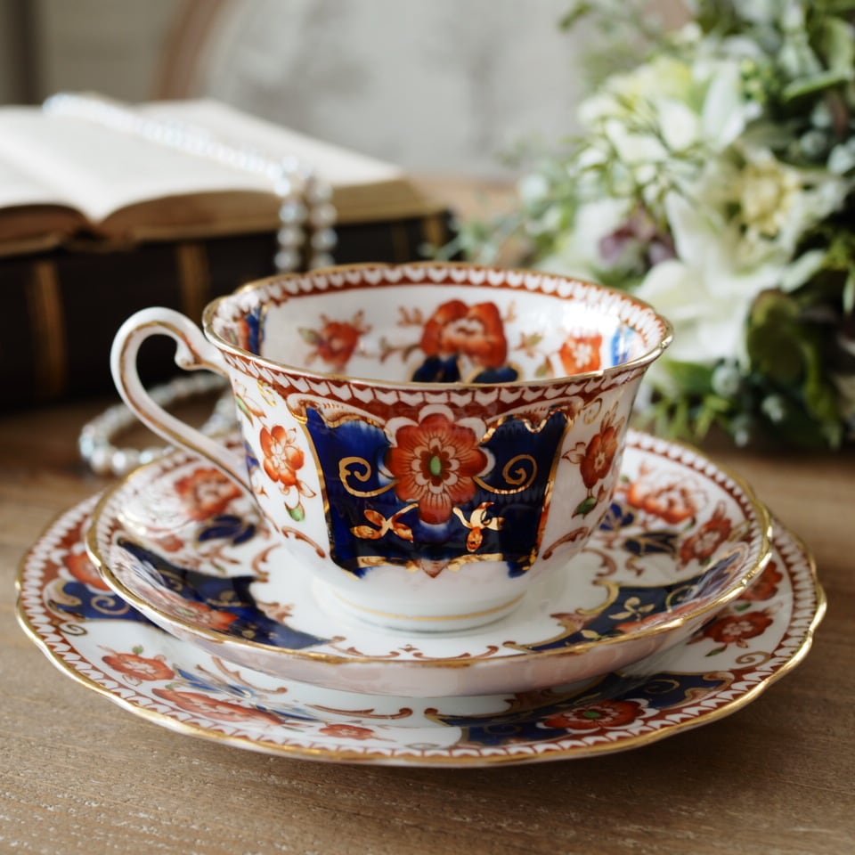 【 タロット13 死神 】英国TUSCAN 戦間期イマリ柄が印象的なトリオ カップ&ソーサー イギリス陶磁器
