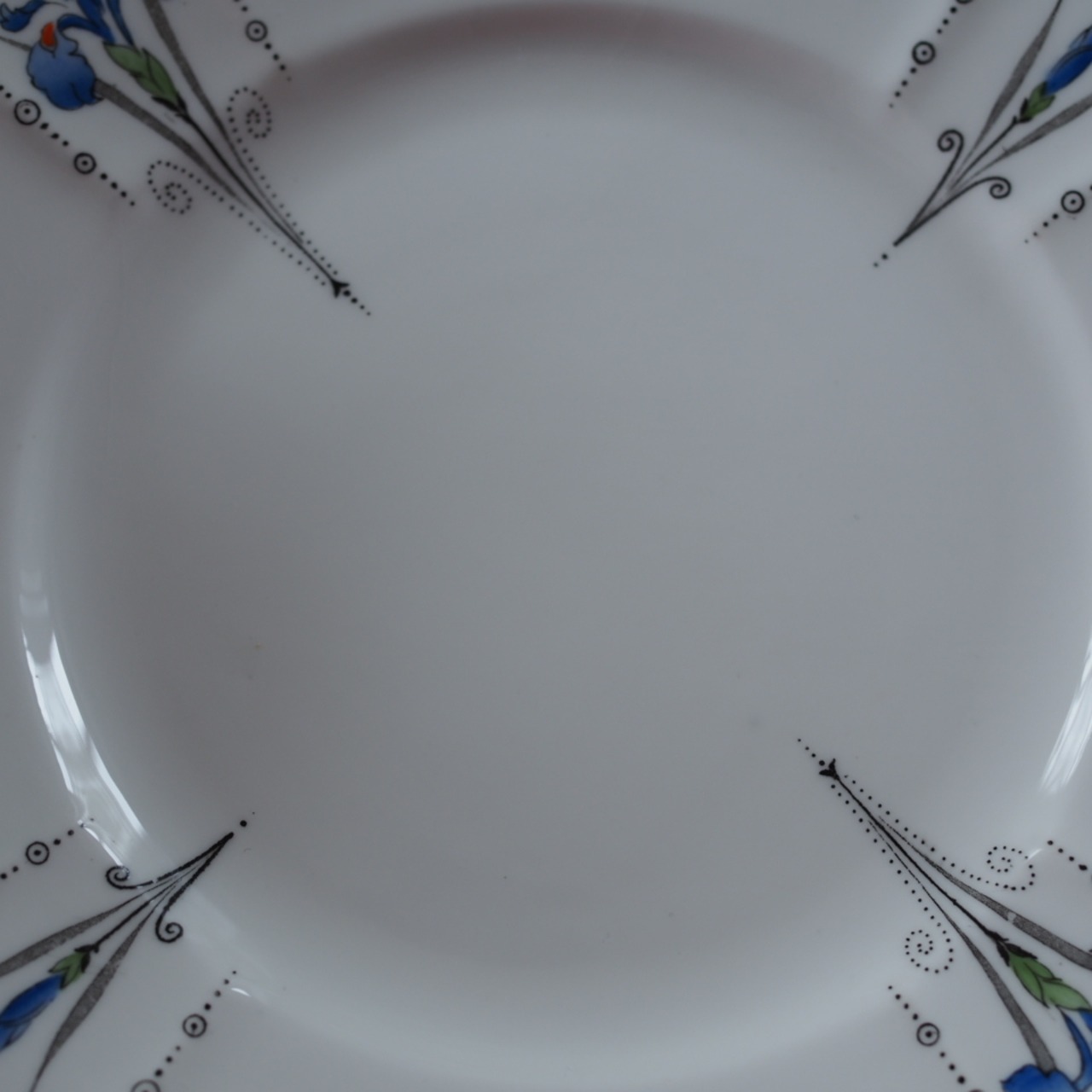 真っ白の白磁にブルーのラインとアイリスの絵柄がとても上品で素敵なお品です。