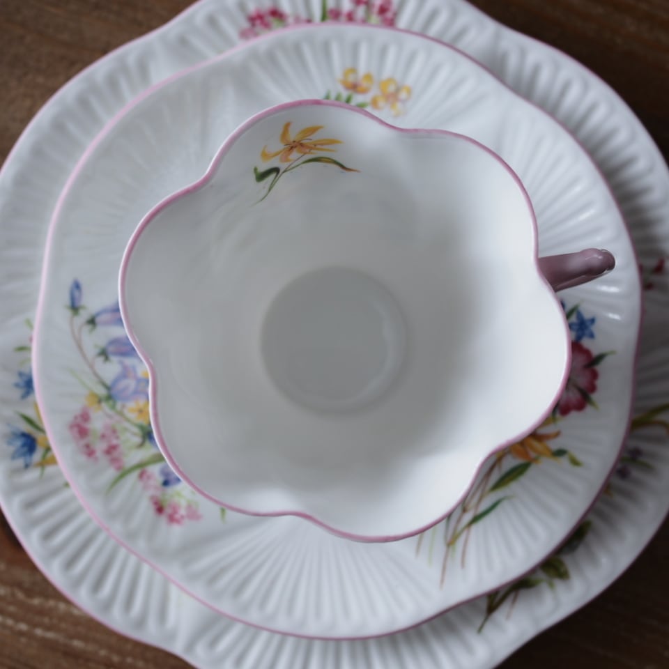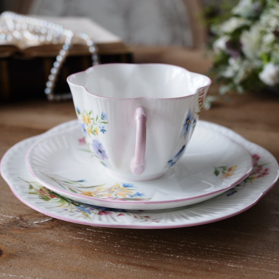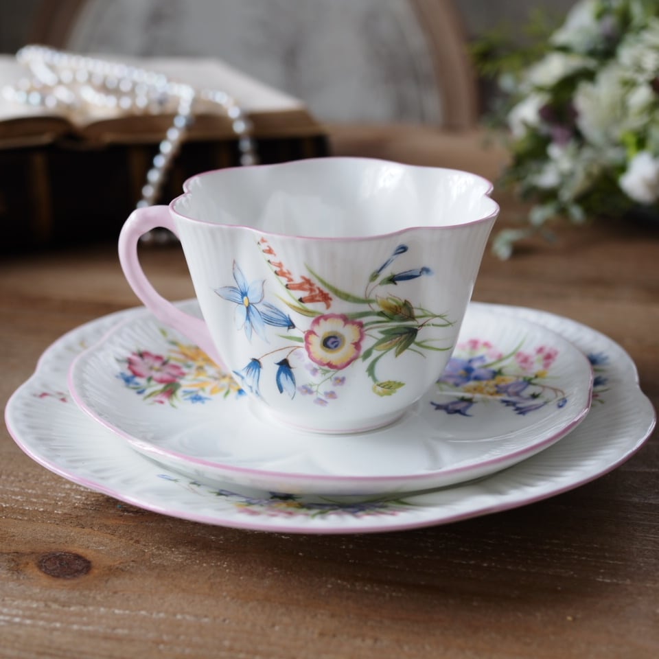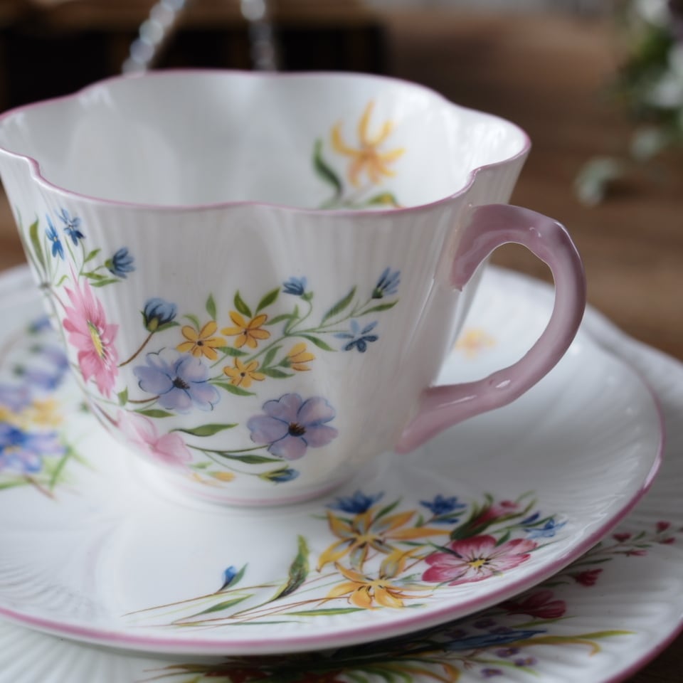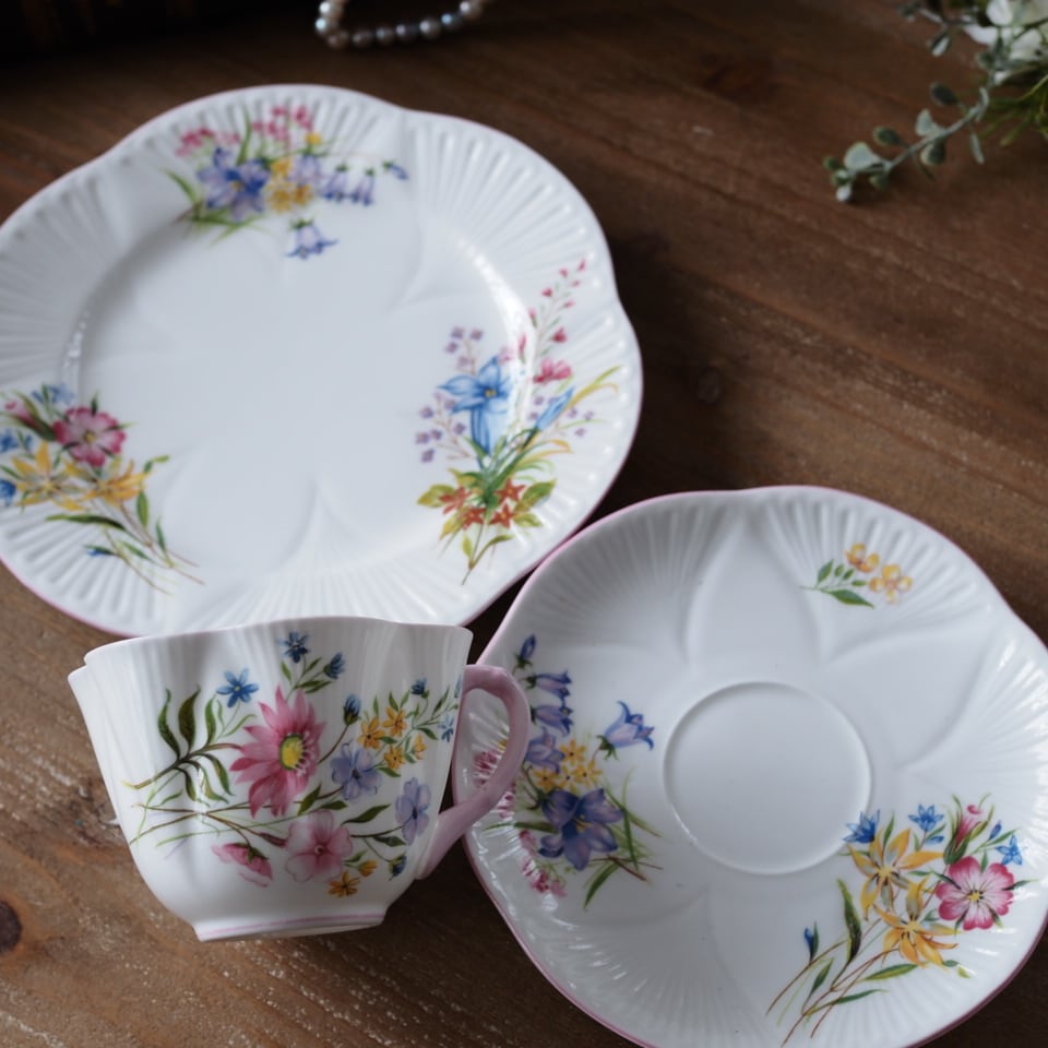 英国シェリー ワイルドフラワー デインティシェイプトリオ カップ&ソーサー
