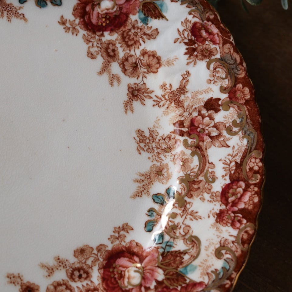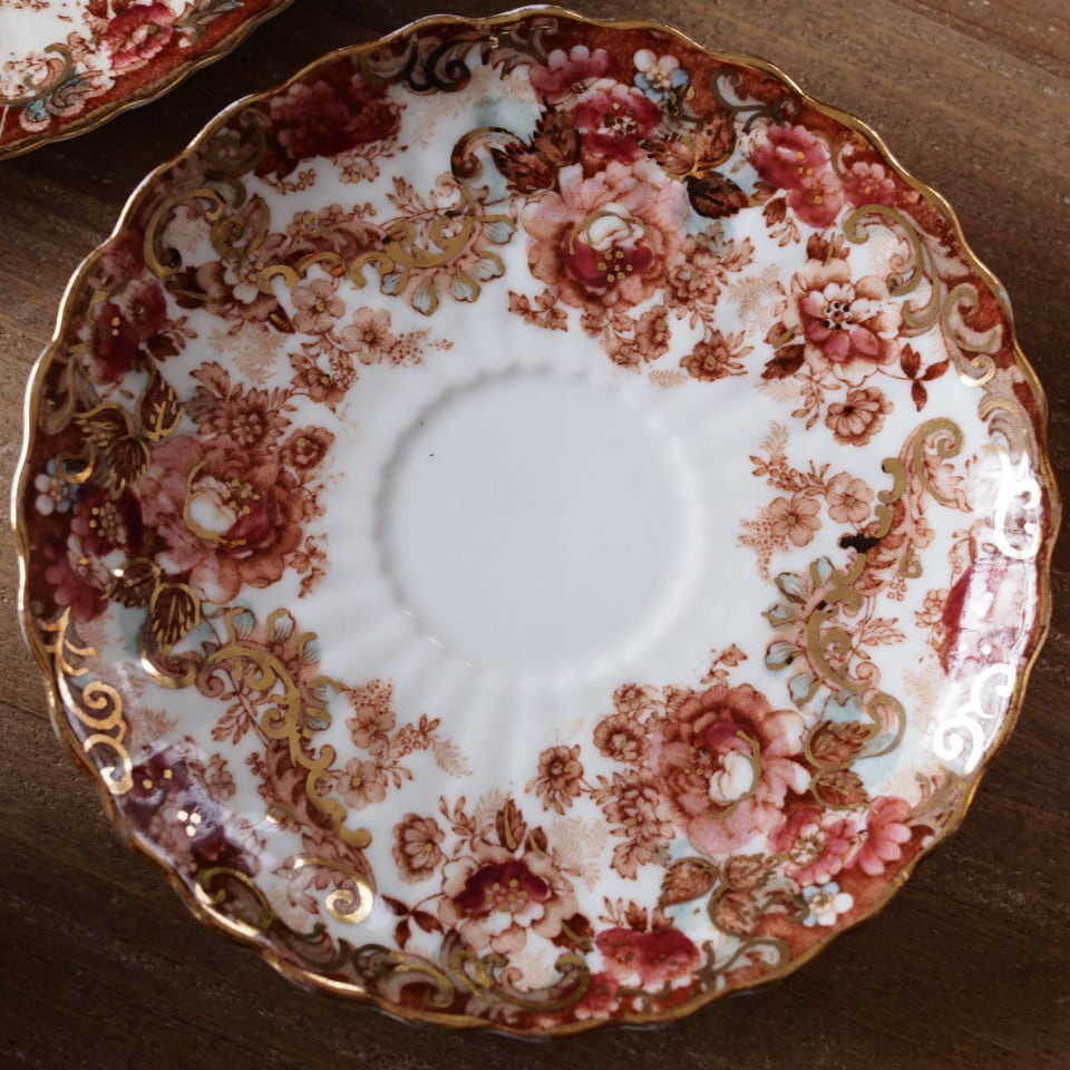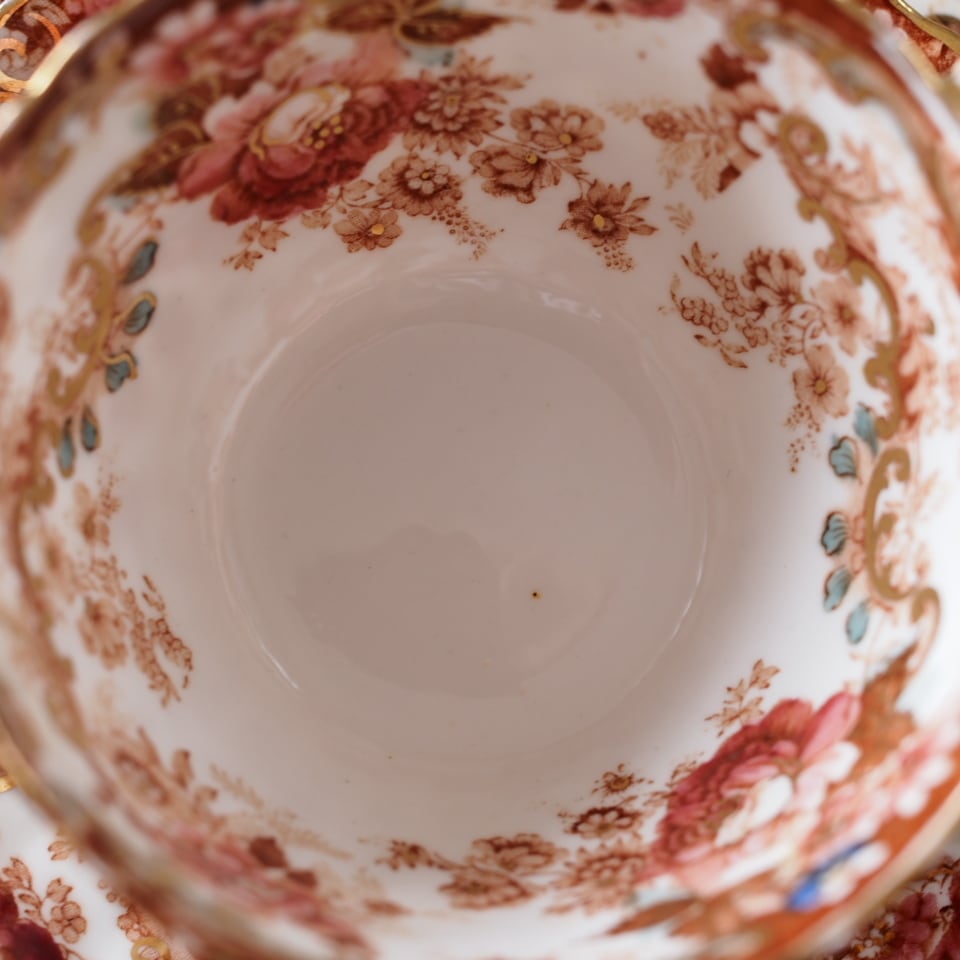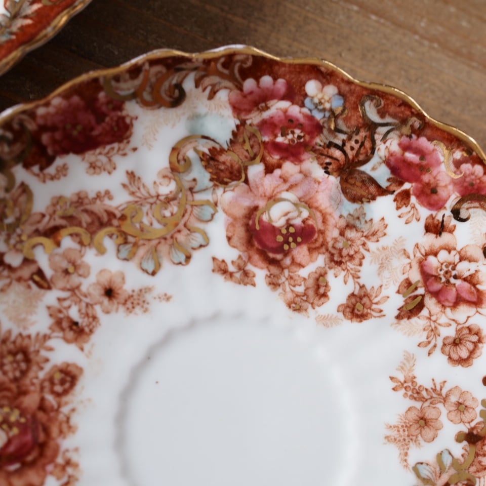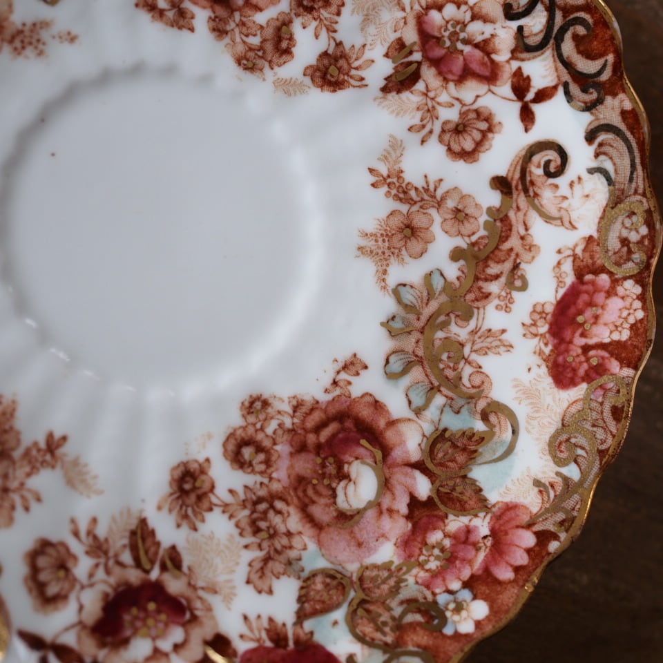 スカラップの縁取りや内側まで広がる装飾は、ラドフォードらしい華麗な意匠の特徴です。コレクションとしてはもちろん、特別なティータイムにも映えるお品です。