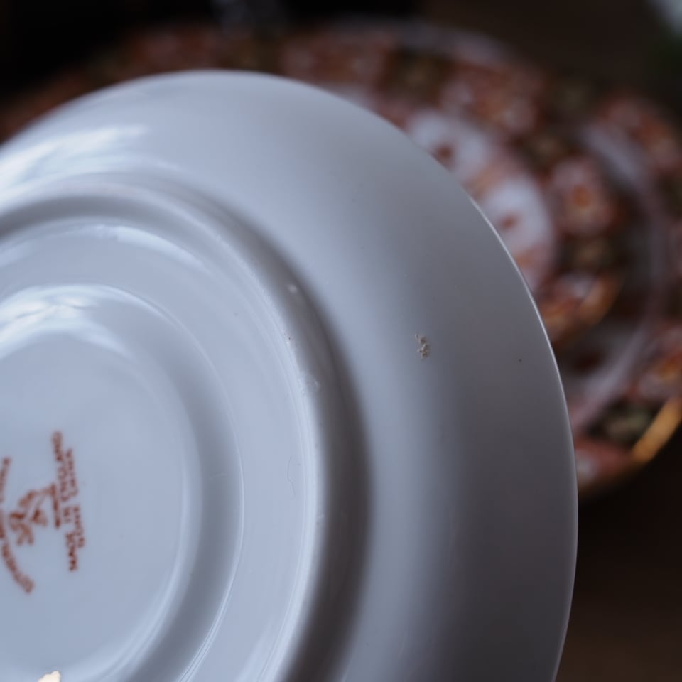 カップに極細かい貫入が見られます。ソーサー裏に小さな気泡、プレート高台にチップがありますが、目立った傷や割れ欠けヒビはなく、使用感の少ない大変良好な綺麗な状態です。