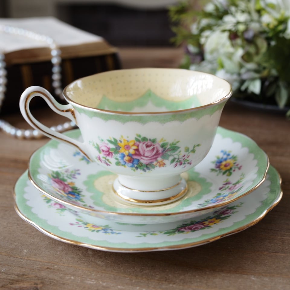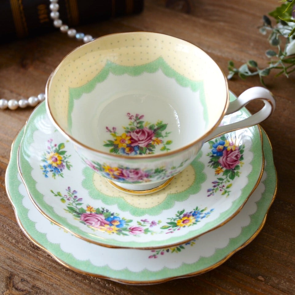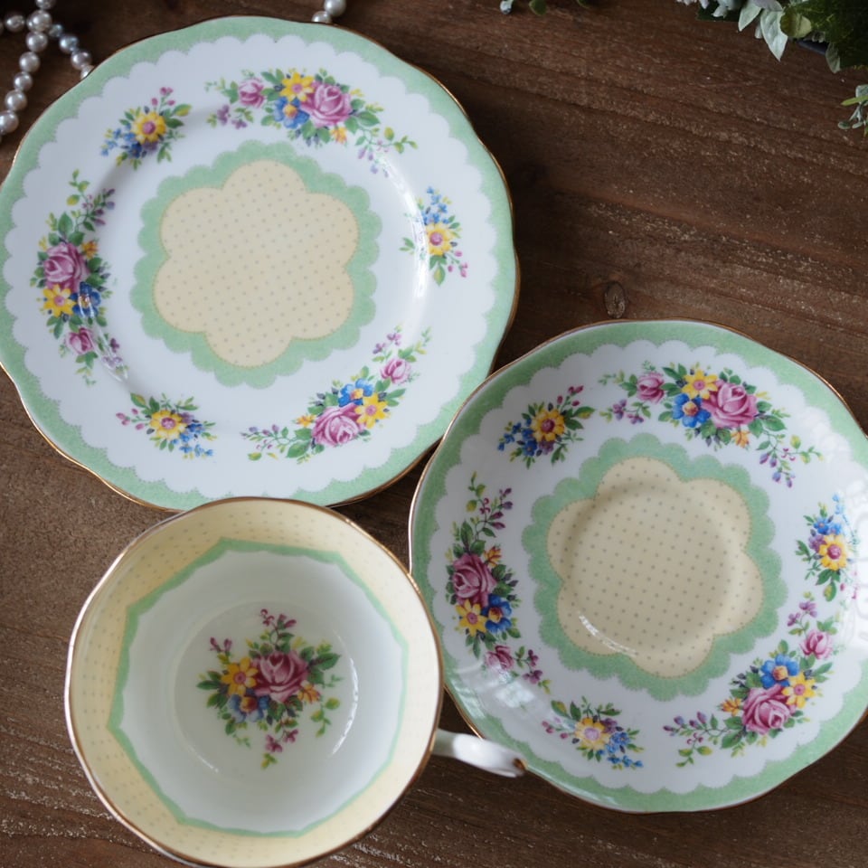 英国ロイヤルアルバート Prudenceプルーデンス ドット可愛いトリオ