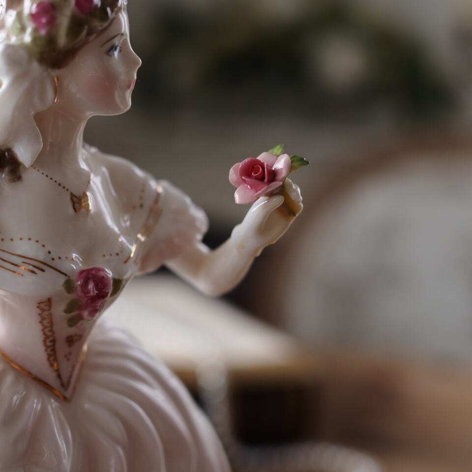 ヴィクトリア朝のロマンティックな世界観をそのまま写し取ったような、美しいフィギュリンです。
