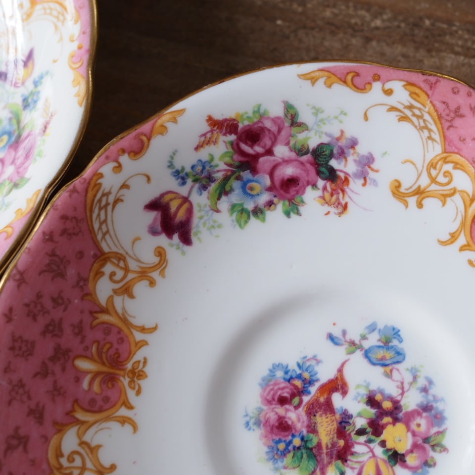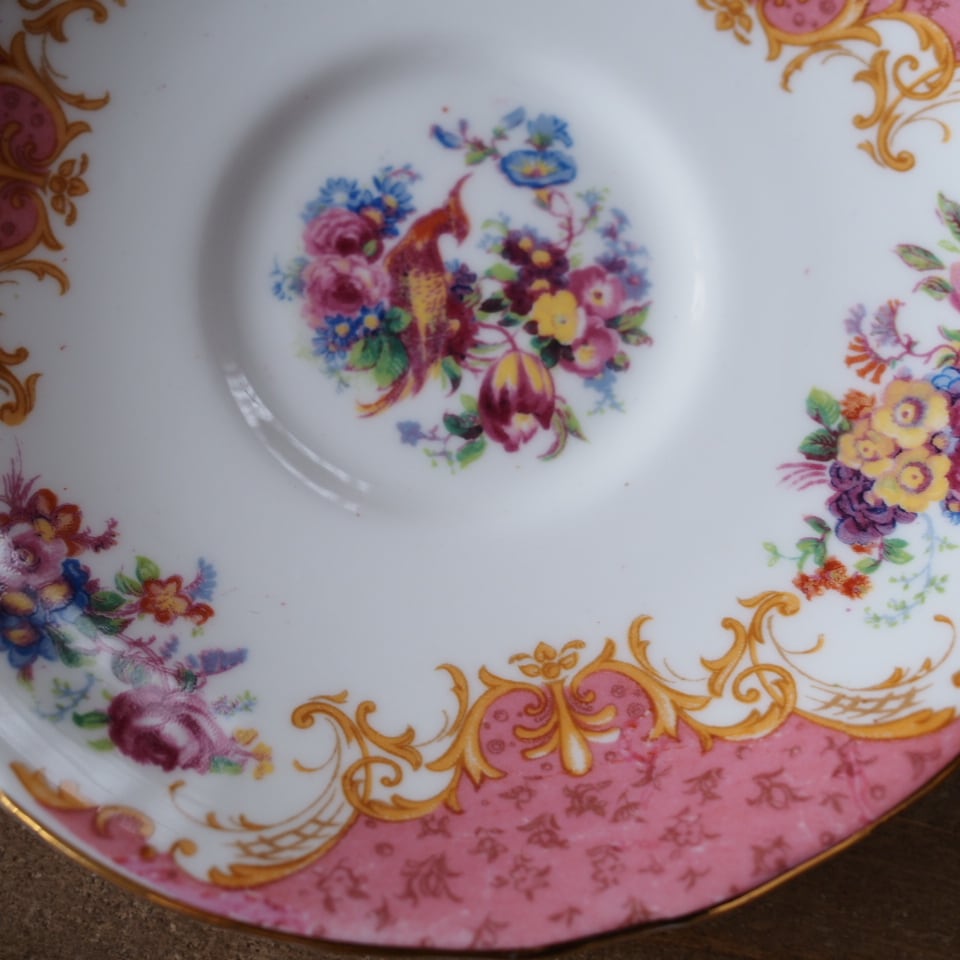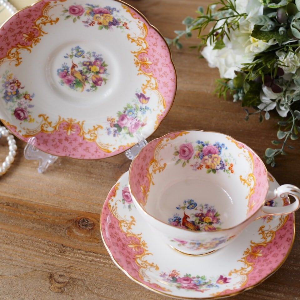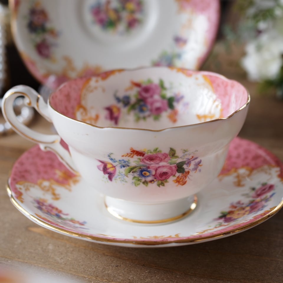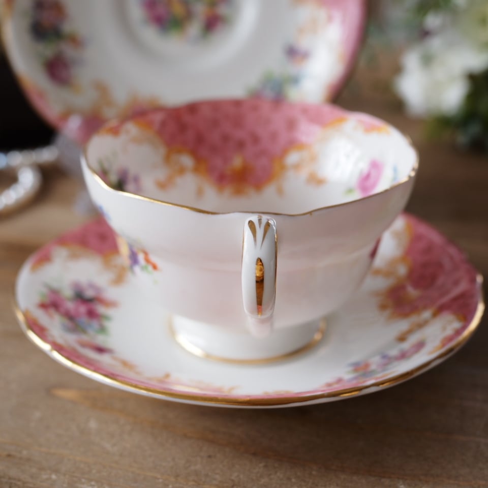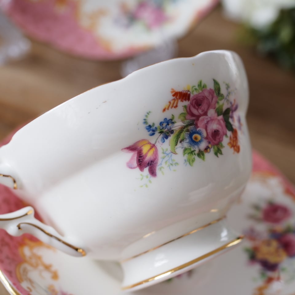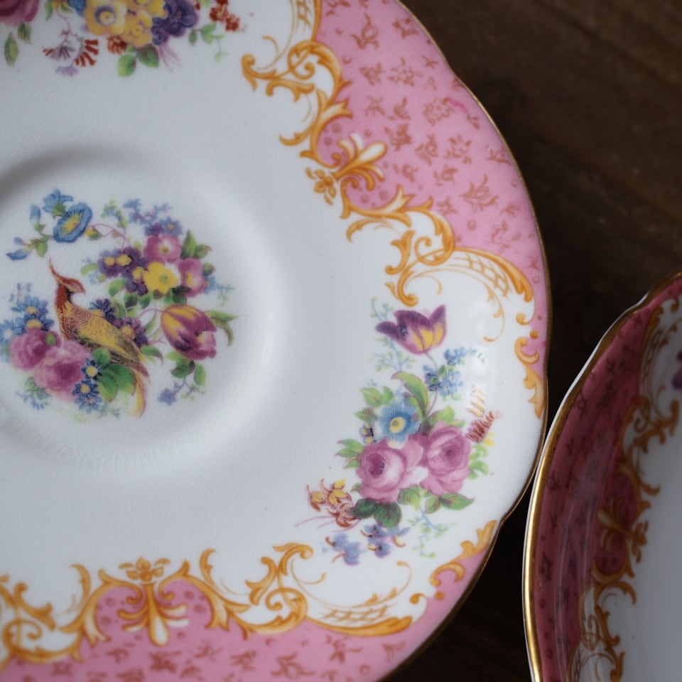 英国アンティーク パラゴン ロッキンガムピンク C&S+スペアソーサーセット