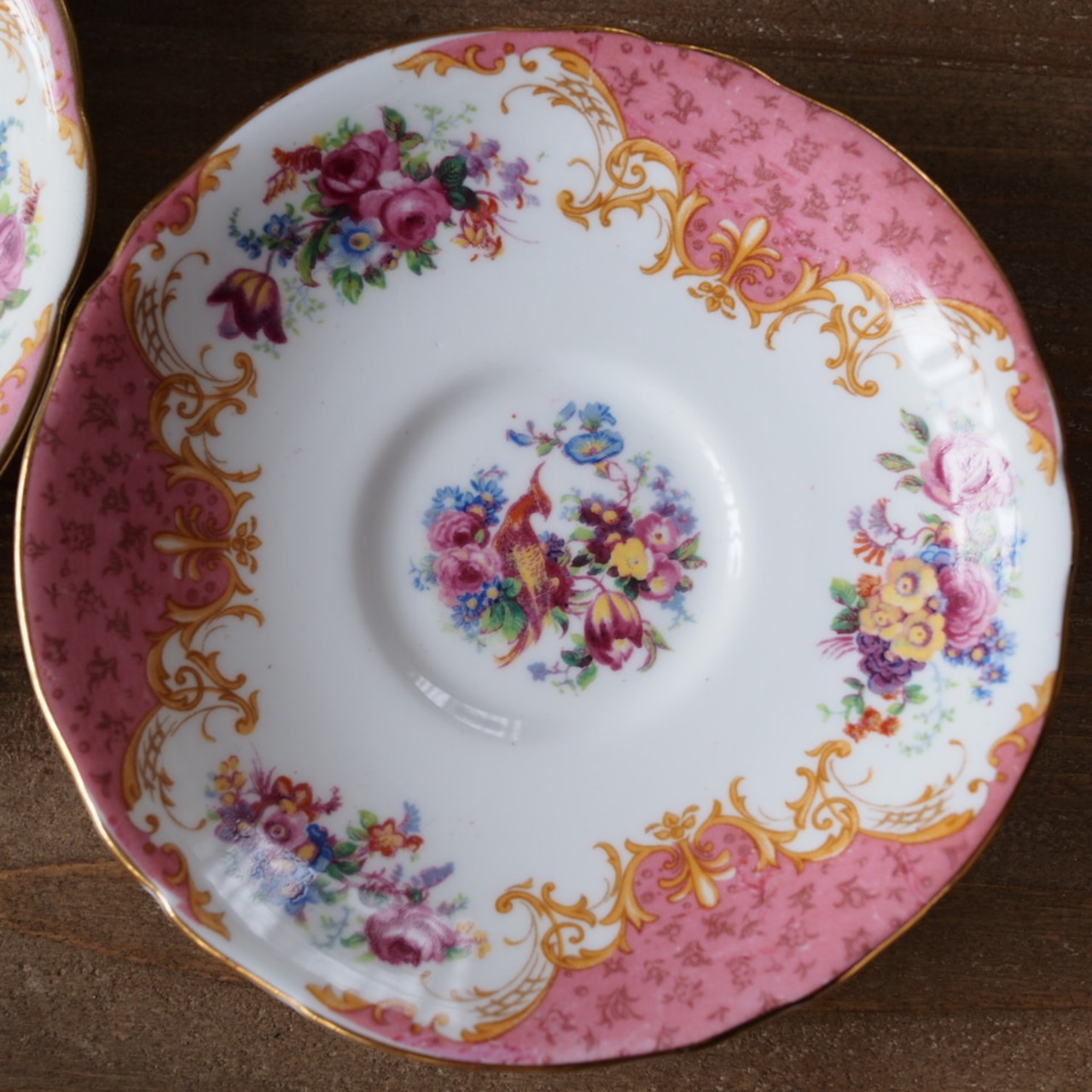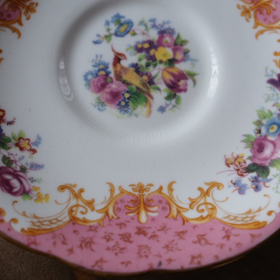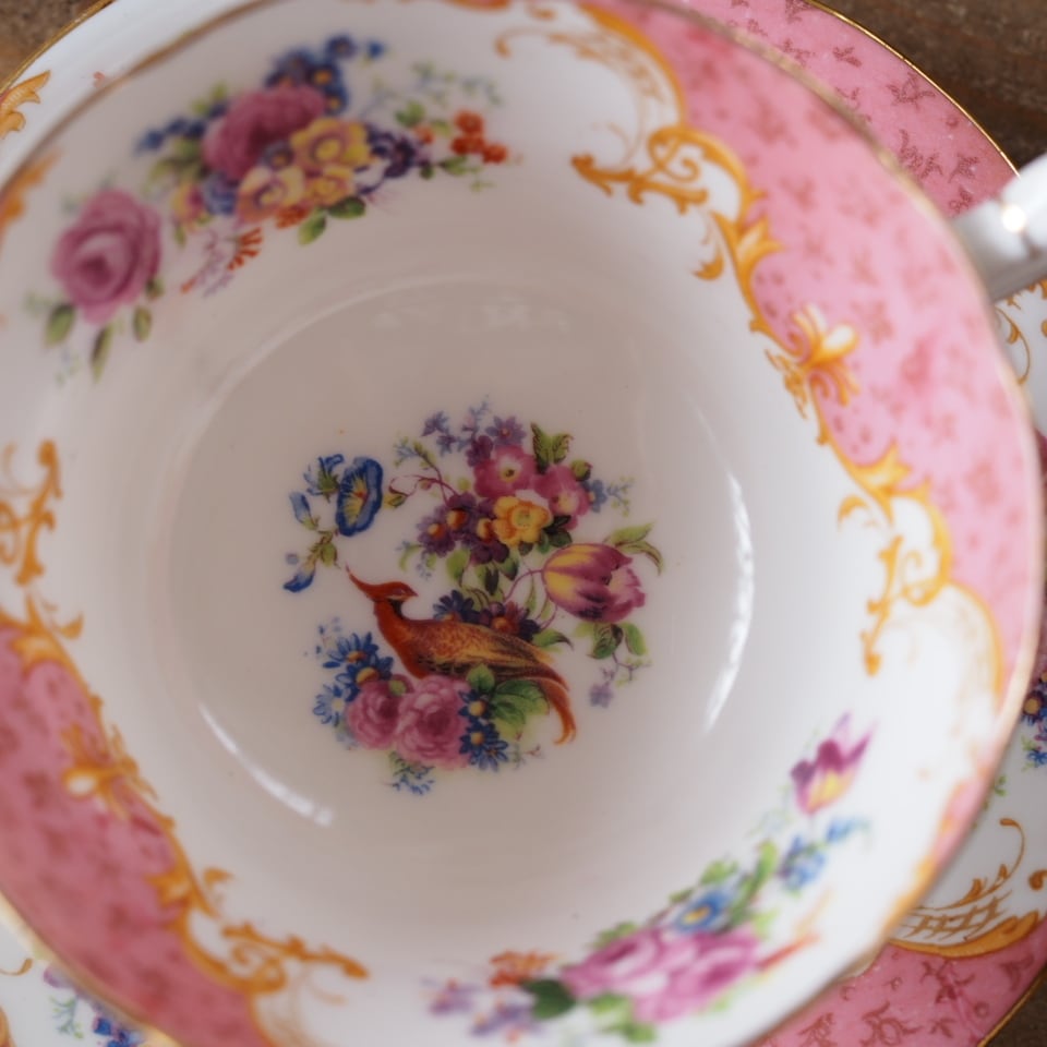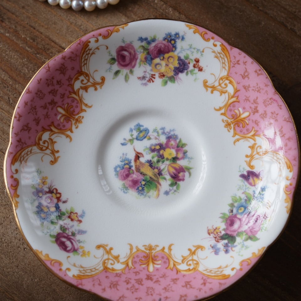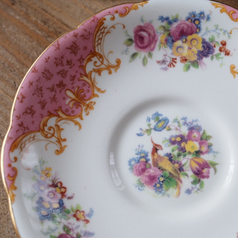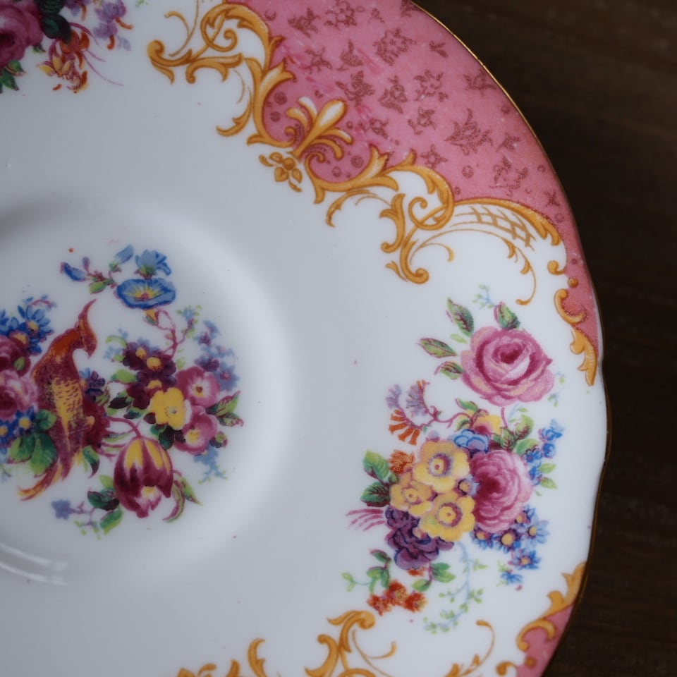 英国アンティーク パラゴン ロッキンガムピンク C&S+スペアソーサーセット