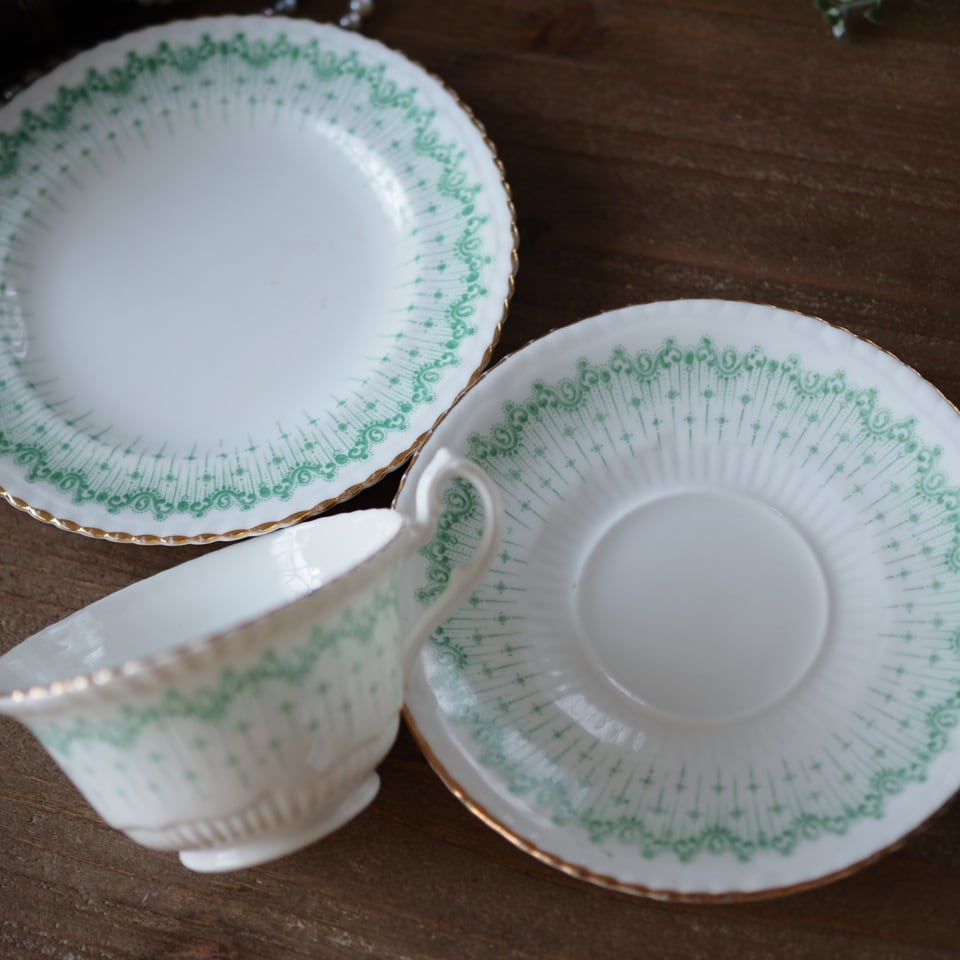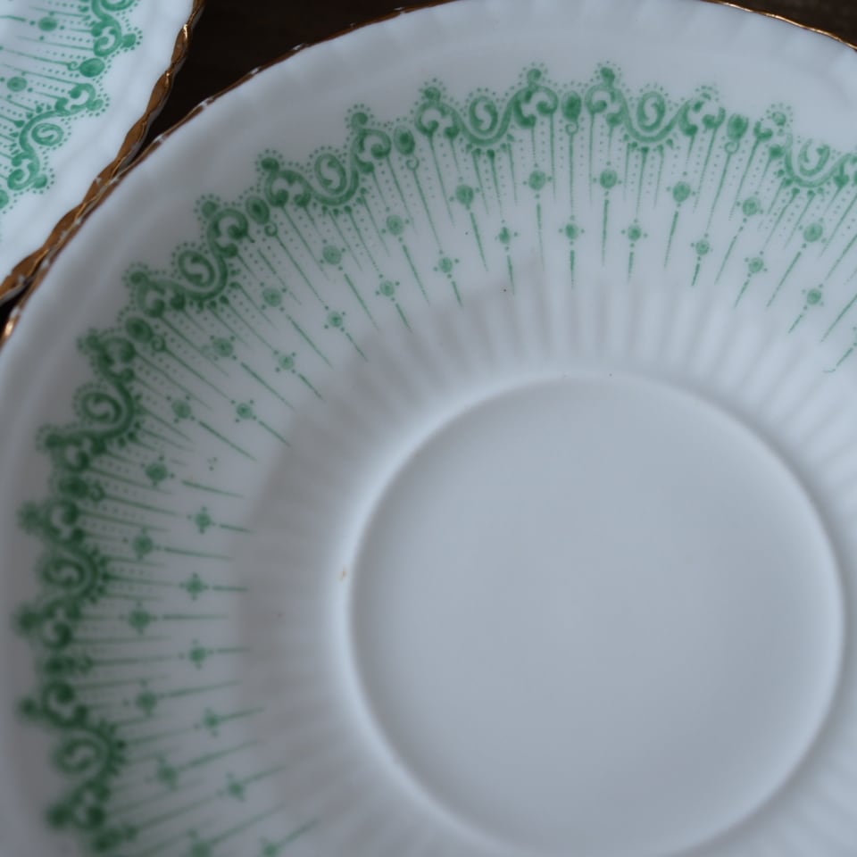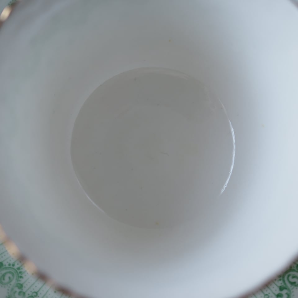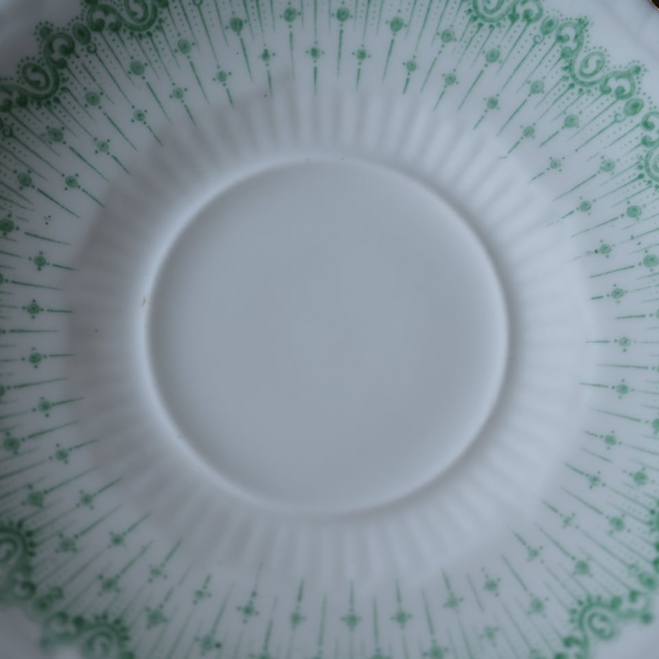淡いグリーンの絵柄がふんわりとしたした雰囲気のとても素敵なお品です。