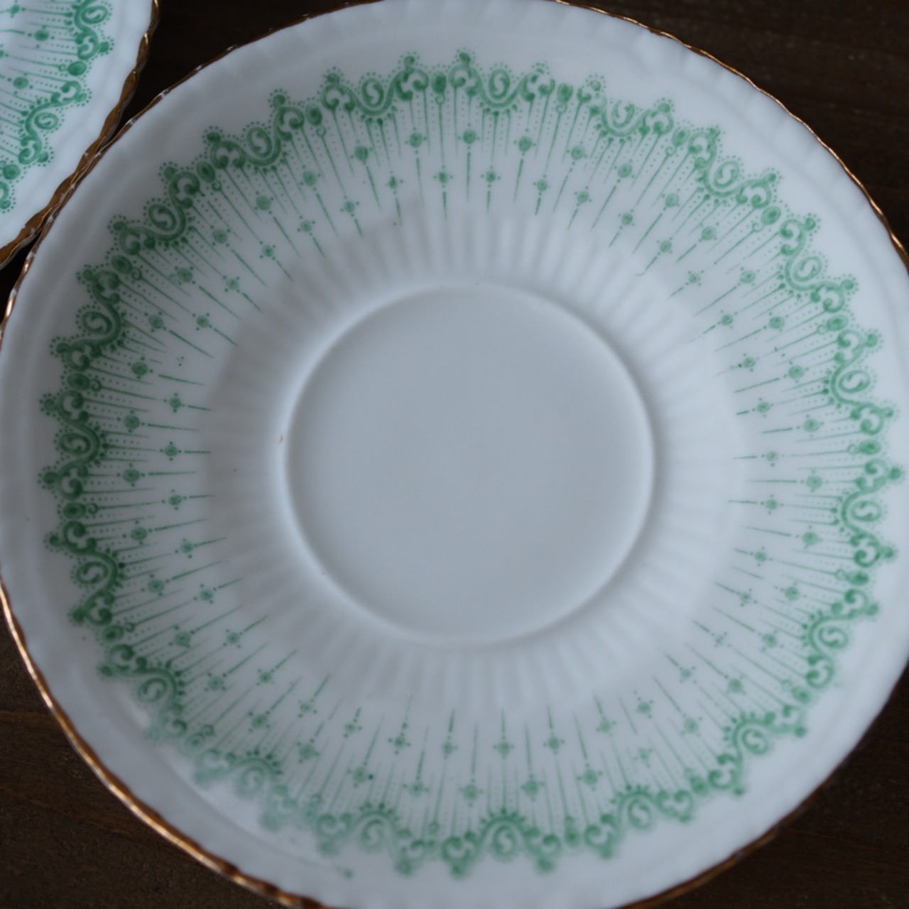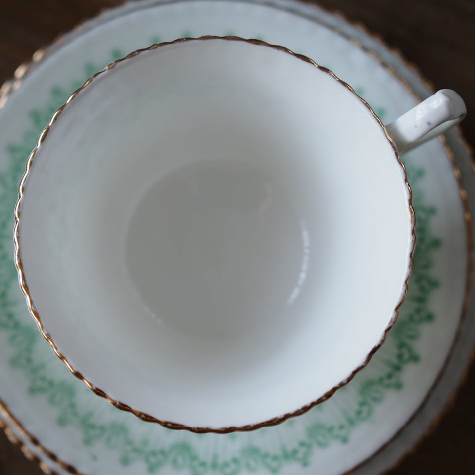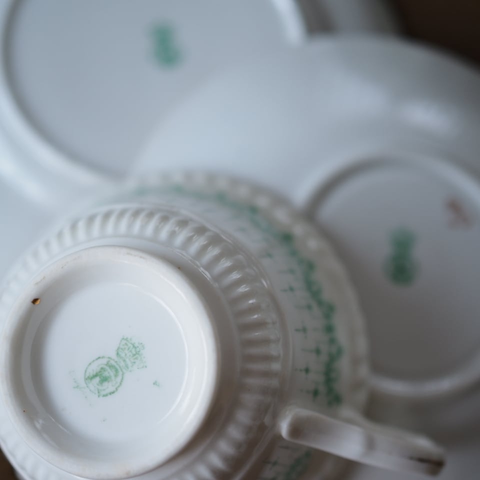淡いグリーンの絵柄がふんわりとしたした雰囲気のとても素敵なお品です。