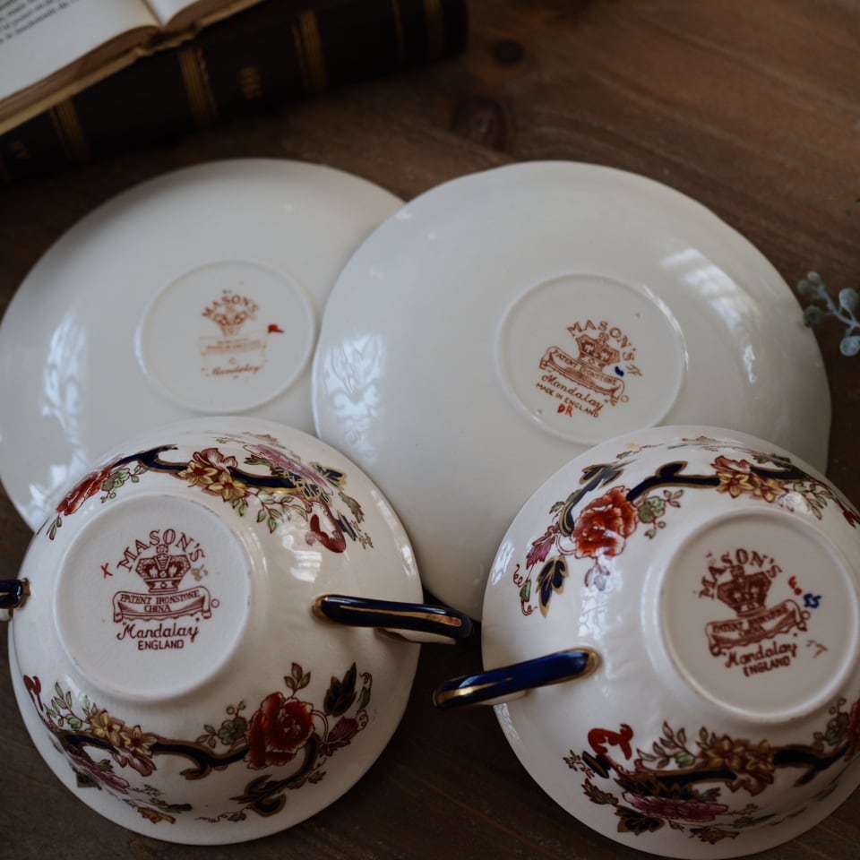 英国メイソンズMason's ブルーマンダレイ スープカップ2客 カップ&ソーサー