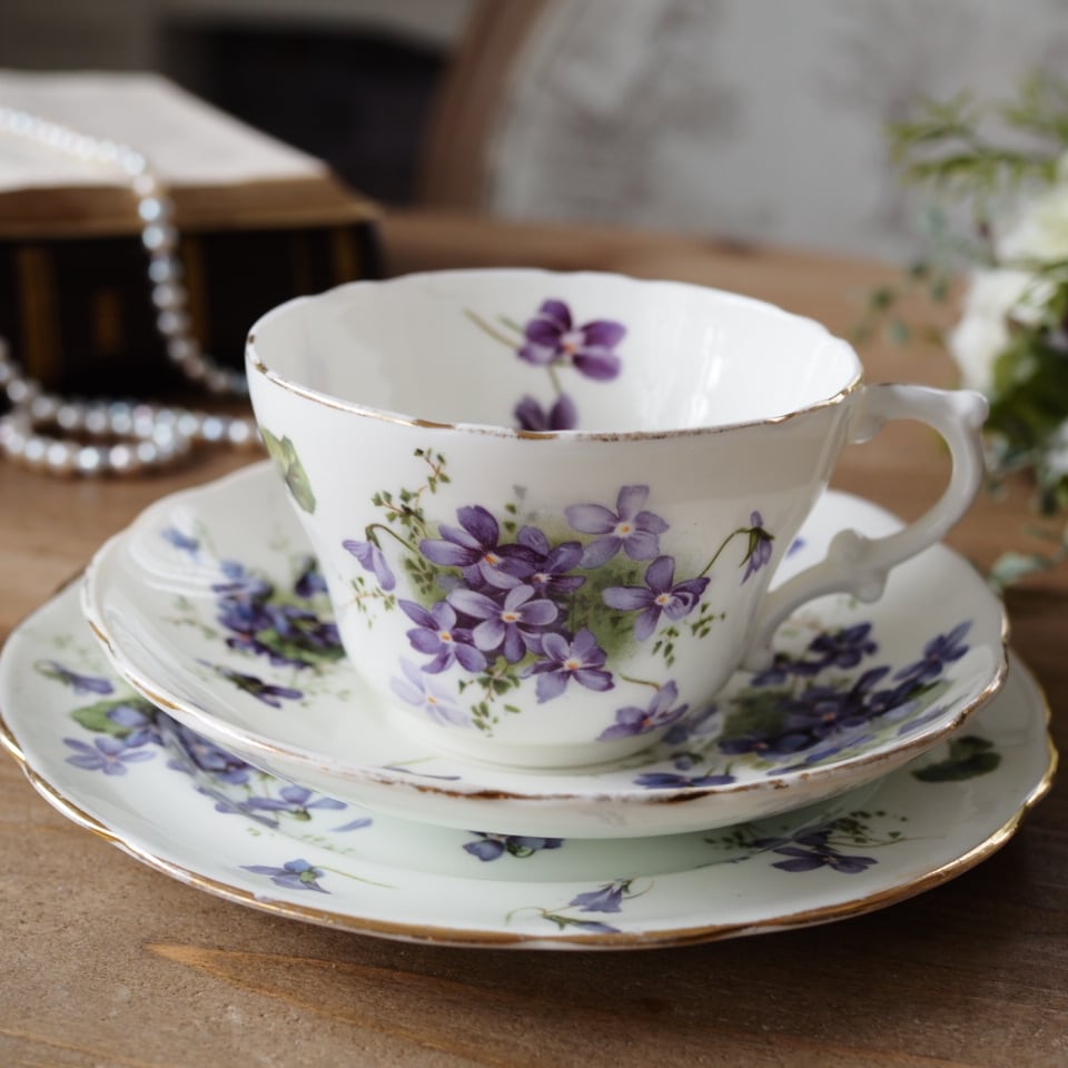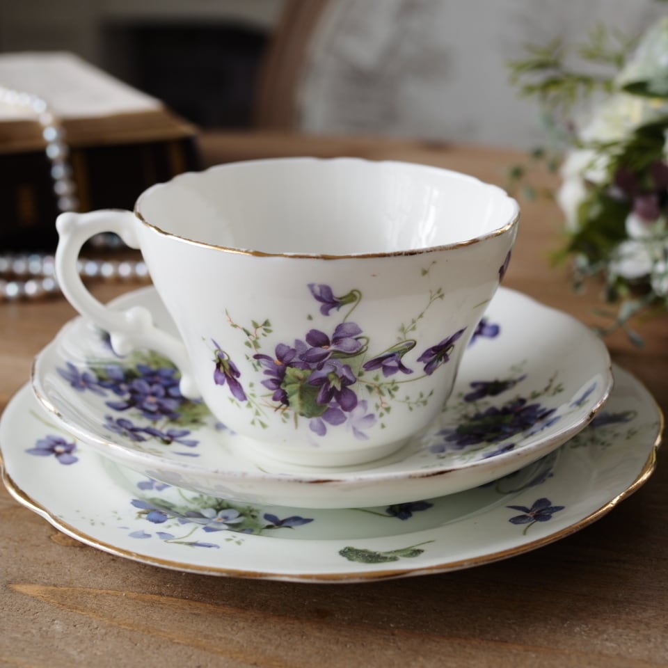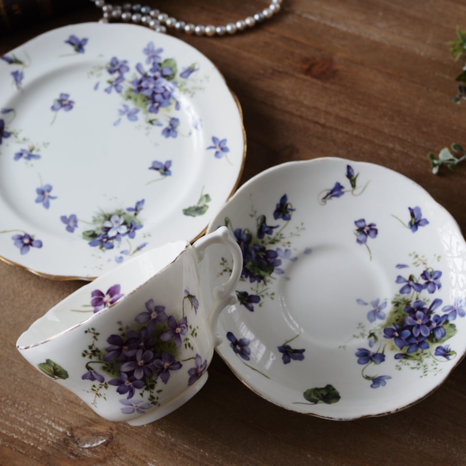 英国ハマースレイ 優雅なヴィクトリアンバイオレット トリオ カップ&ソーサー