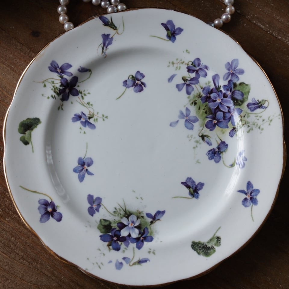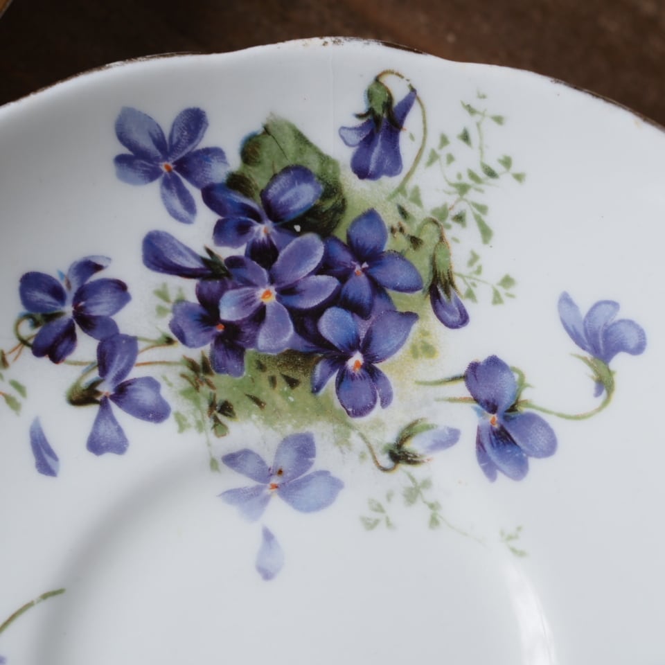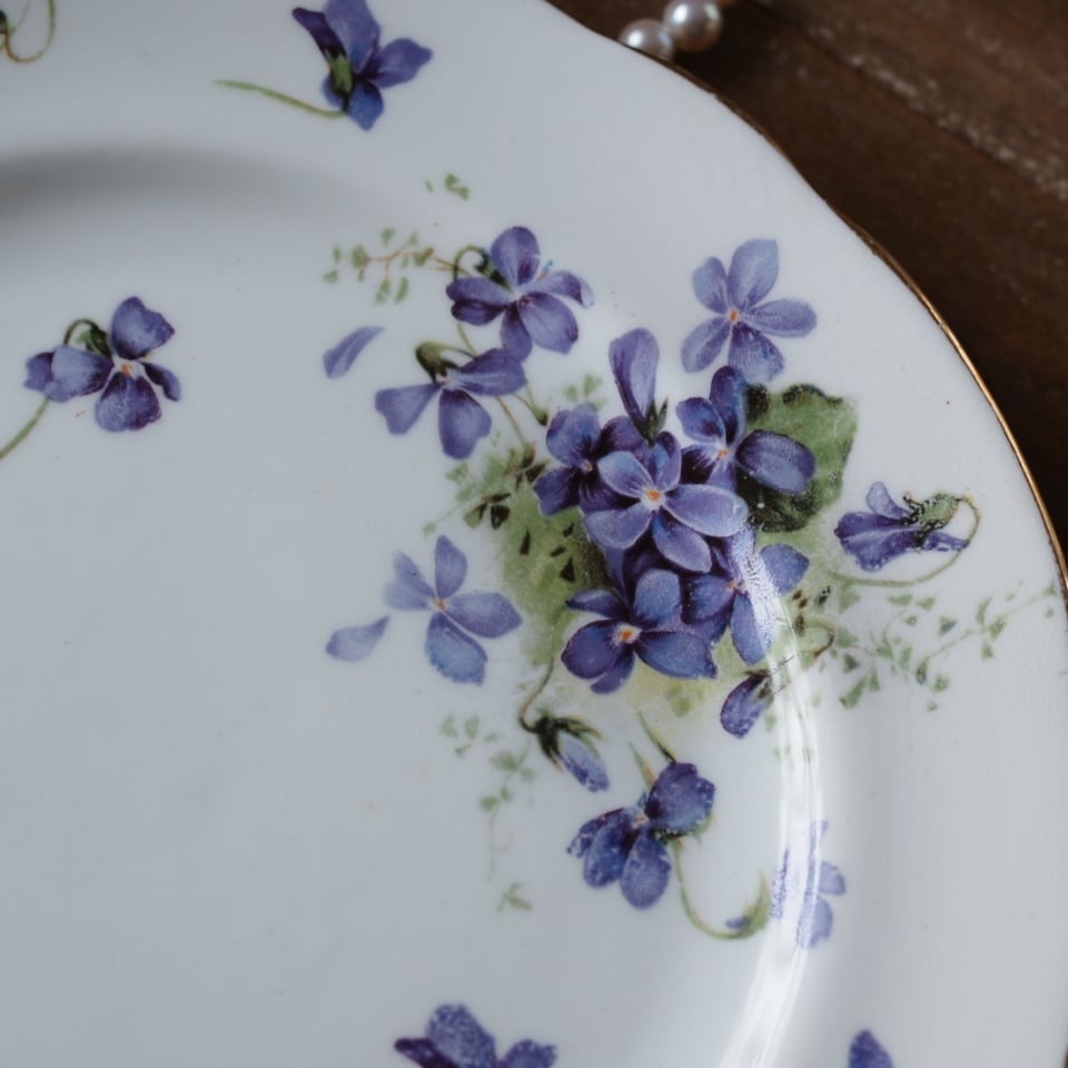 繊細に描かれたスミレの花は可憐で品があり、