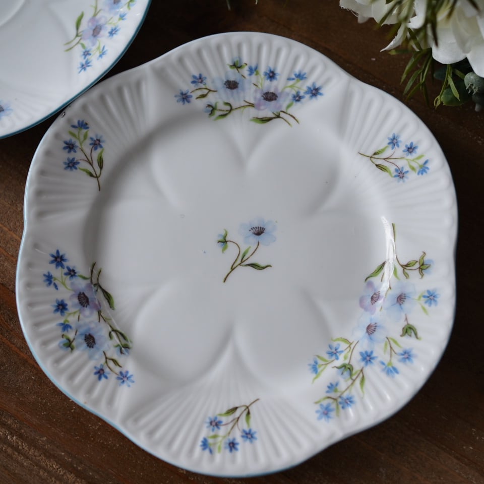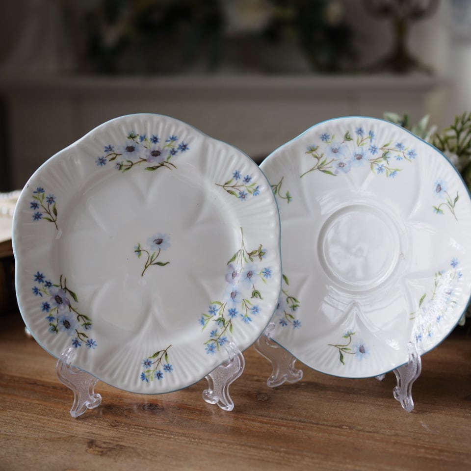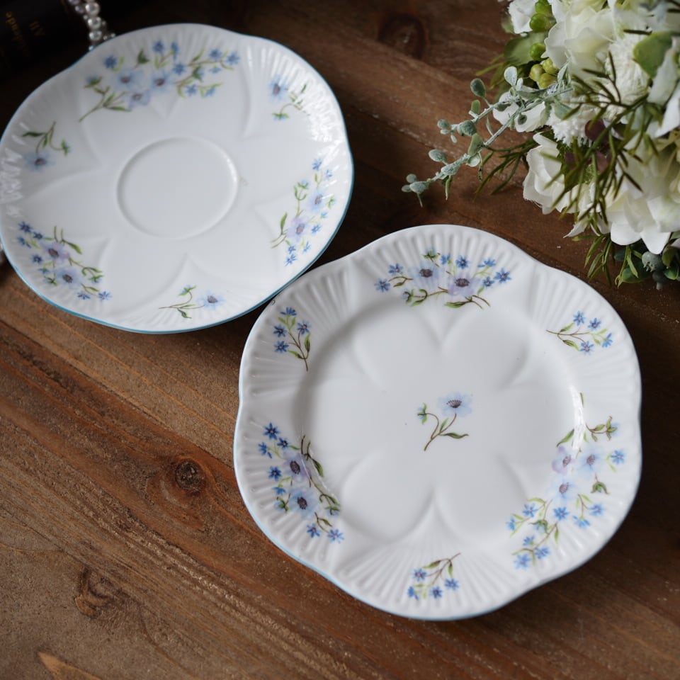 英国シェリーshelley ブルーロック 可憐な小花 プレートおまけソーサー