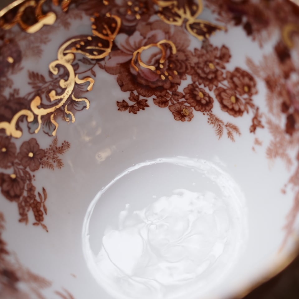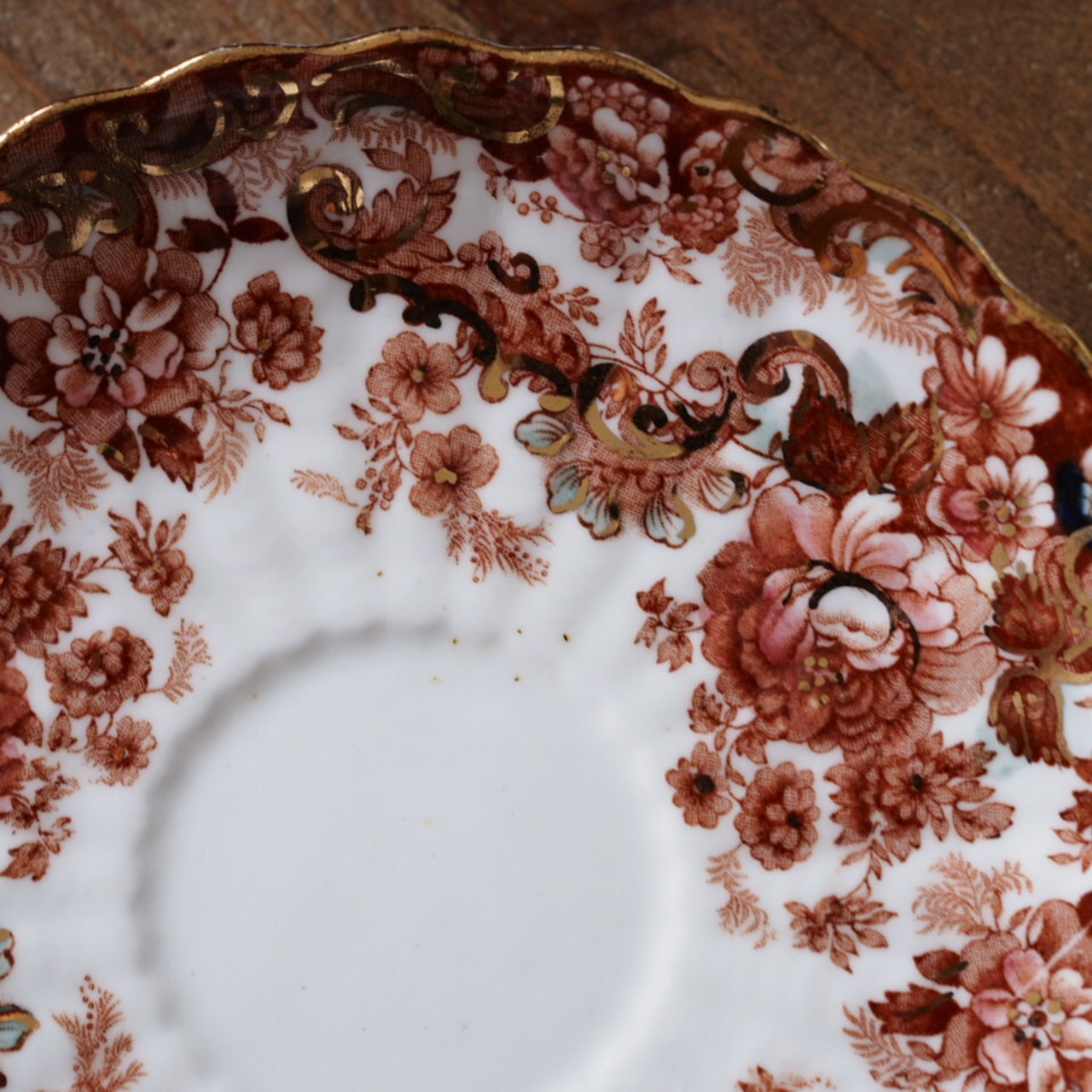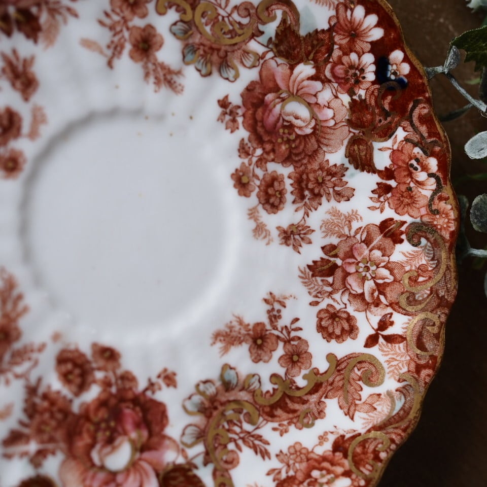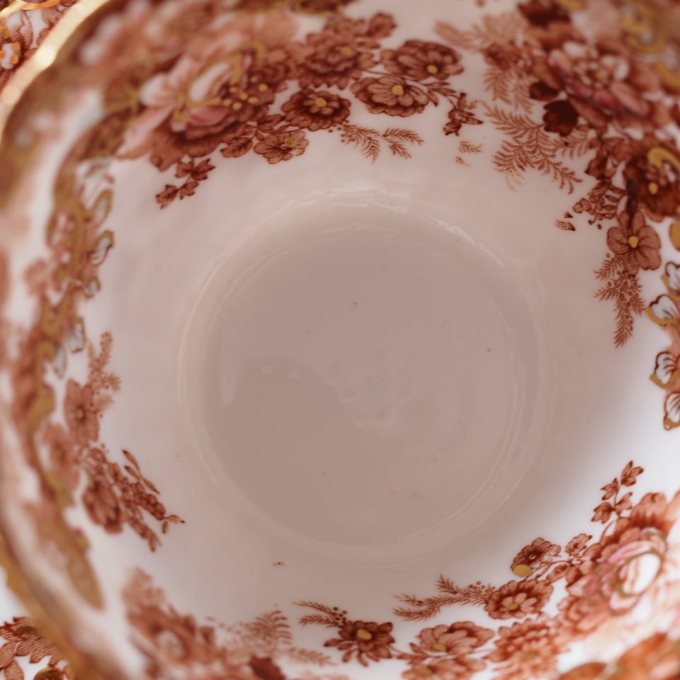 スカラップの縁取りや内側まで広がる装飾は、ラドフォードらしい華麗な意匠の特徴です。コレクションとしてはもちろん、特別なティータイムにも映えるお品です。