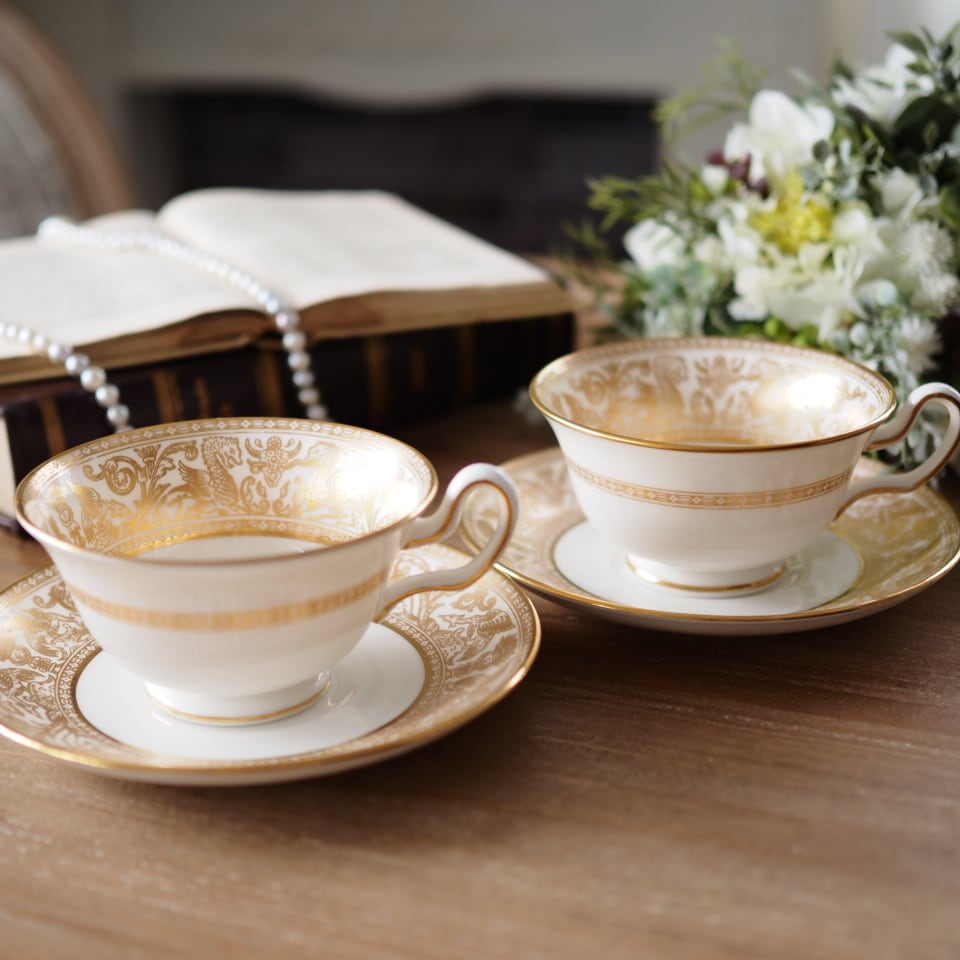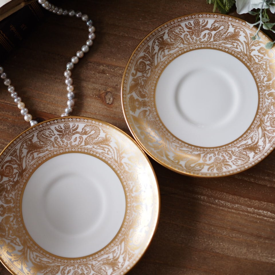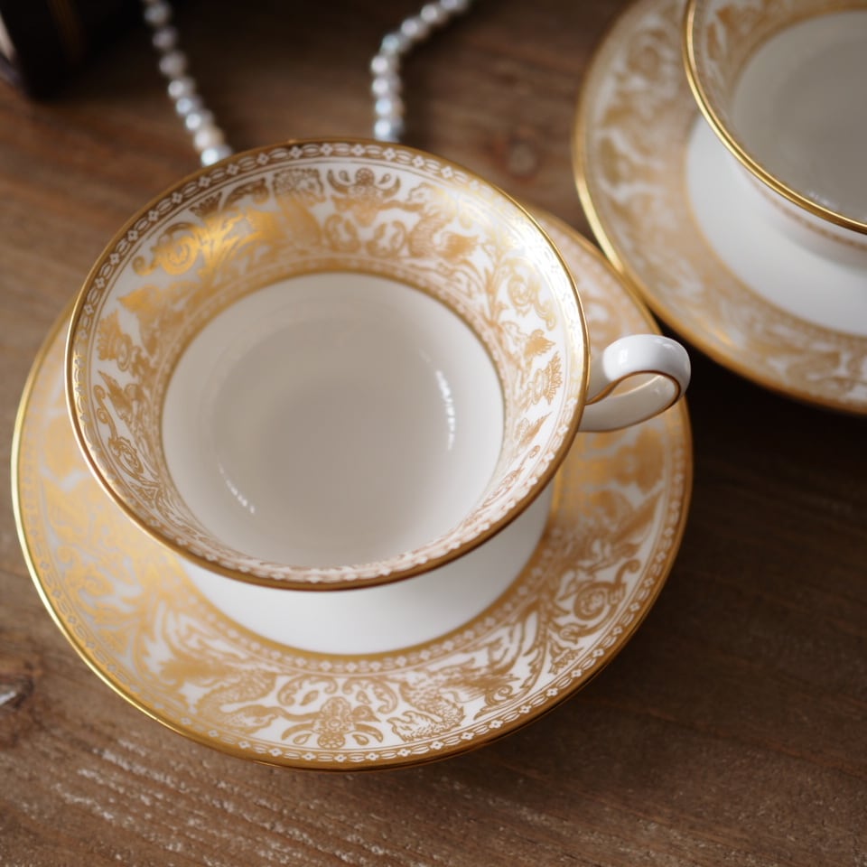 極美品 ウェッジウッド フロレンティーン ゴールド カップ&ソーサー2客セット