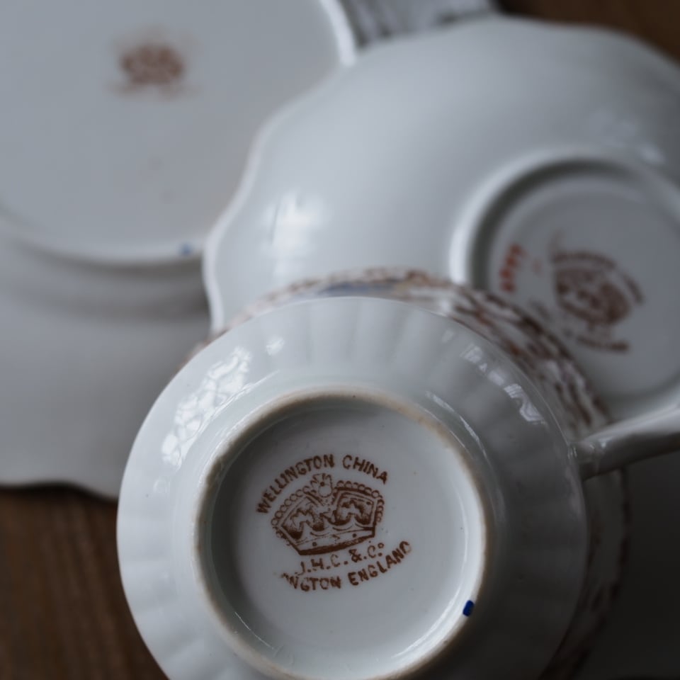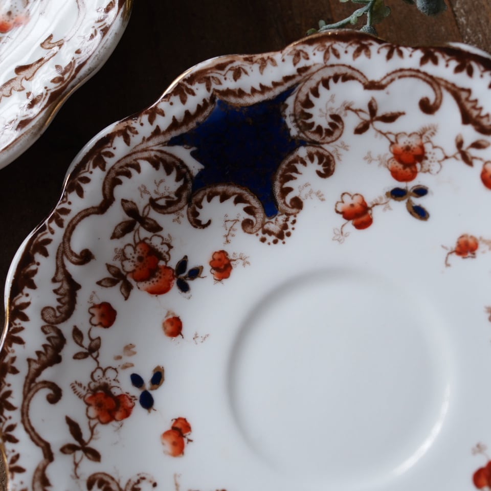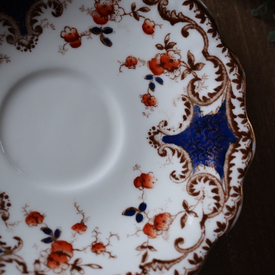 英国アンティーク ウェリントン イマリ様式 コバルト トリオ カップ&ソーサー