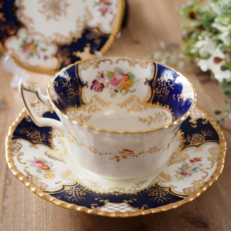 英国コールポート バットウィング・コバルト 大きめカップ&ソーサー+プレート