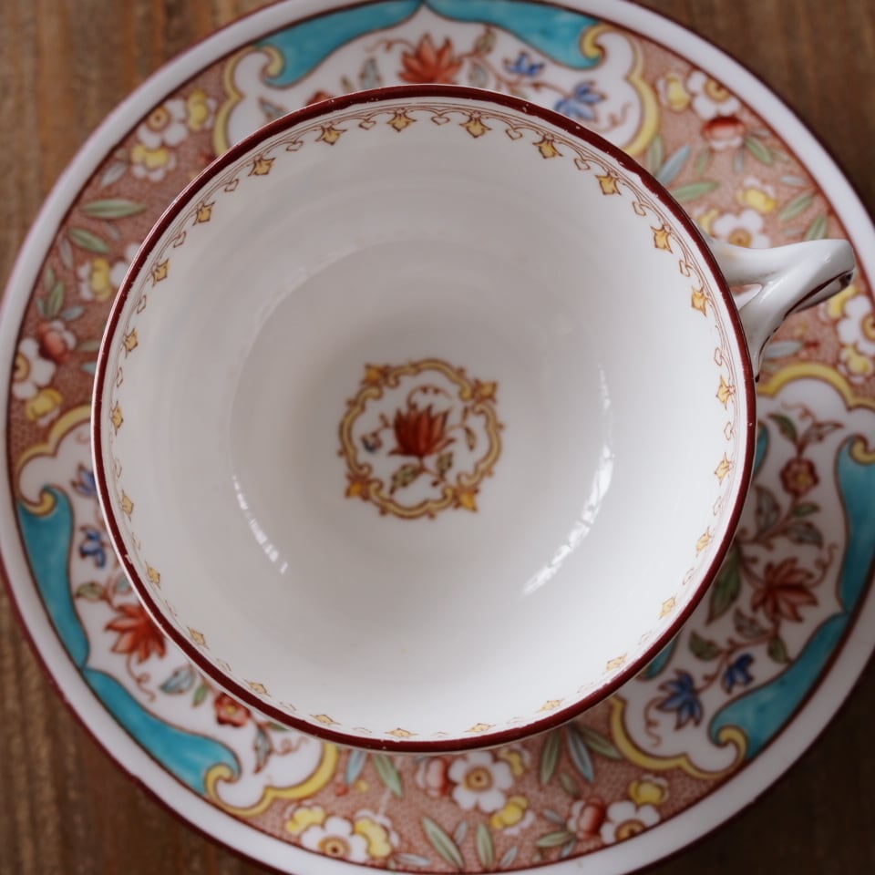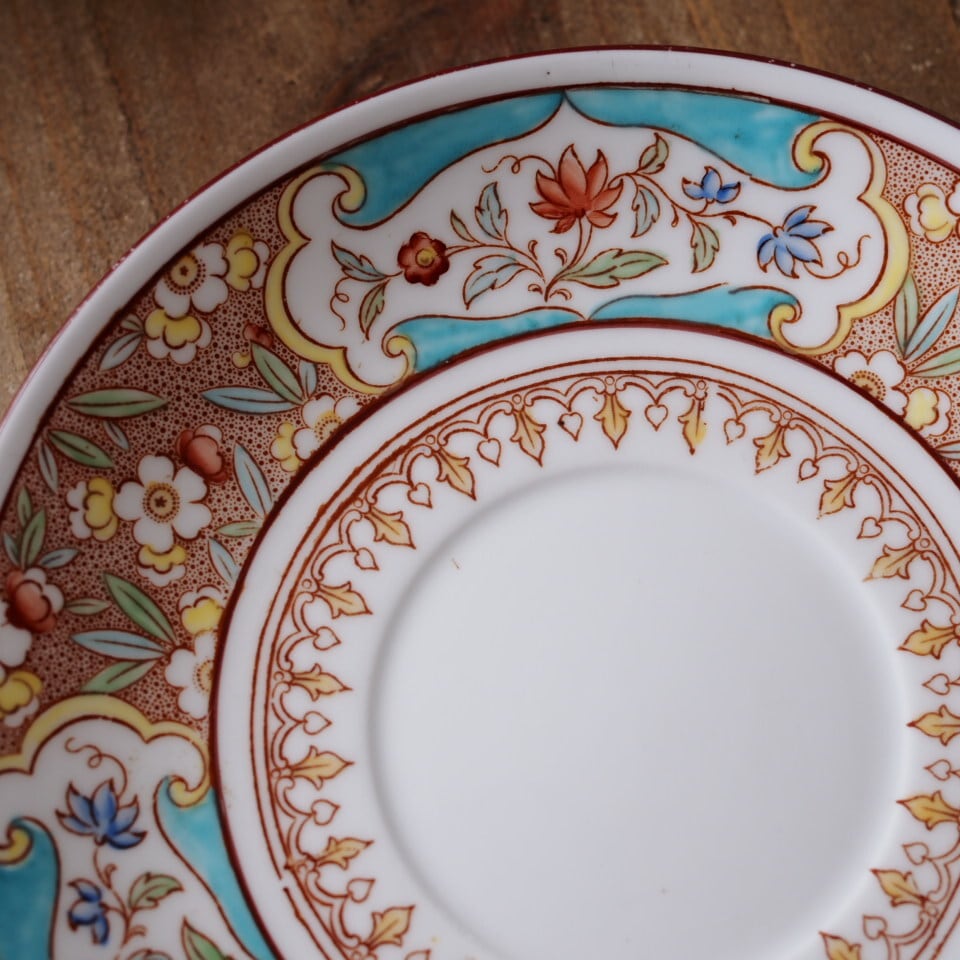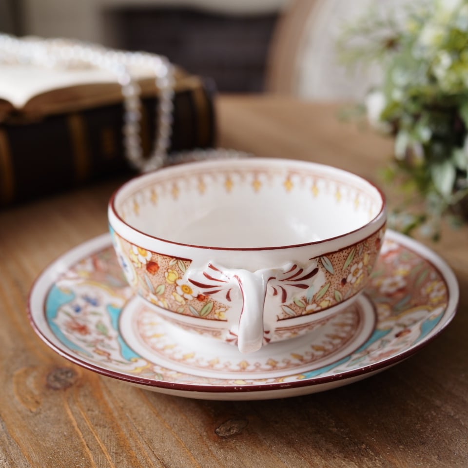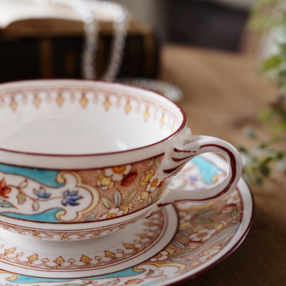 こちらは、Sarreguemines(サルグミンヌ)が、英国の名窯Minton(ミントン)の意匠を採用して製作したティーカップ&ソーサーです。