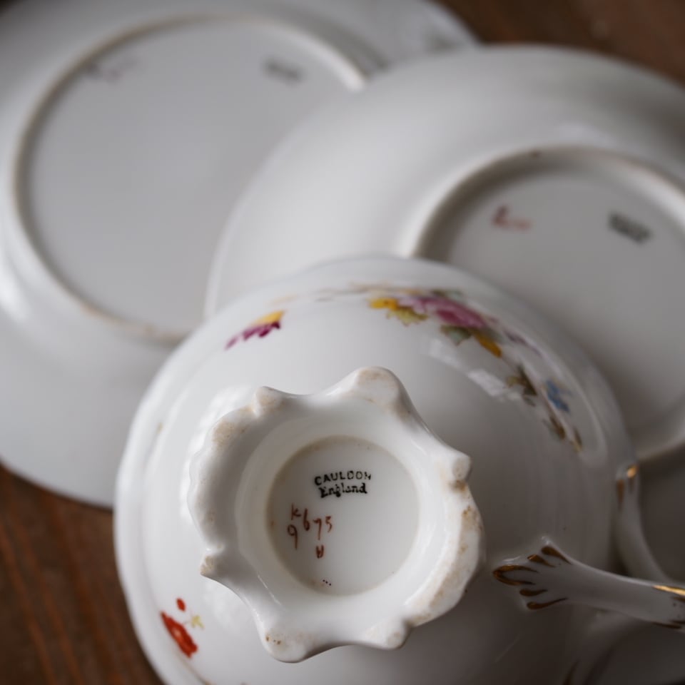 こちらのお品は、Cauldon の中でも人気の高い花柄シリーズのひとつで、3点揃ったトリオは近年ますます見かける機会が減っている希少なお品。
