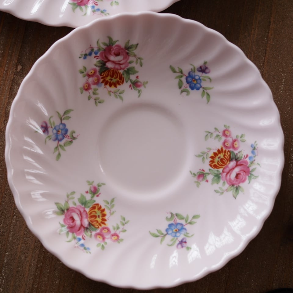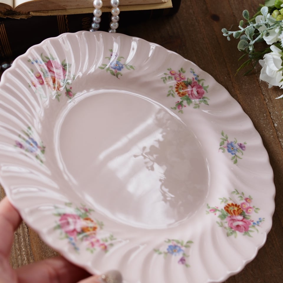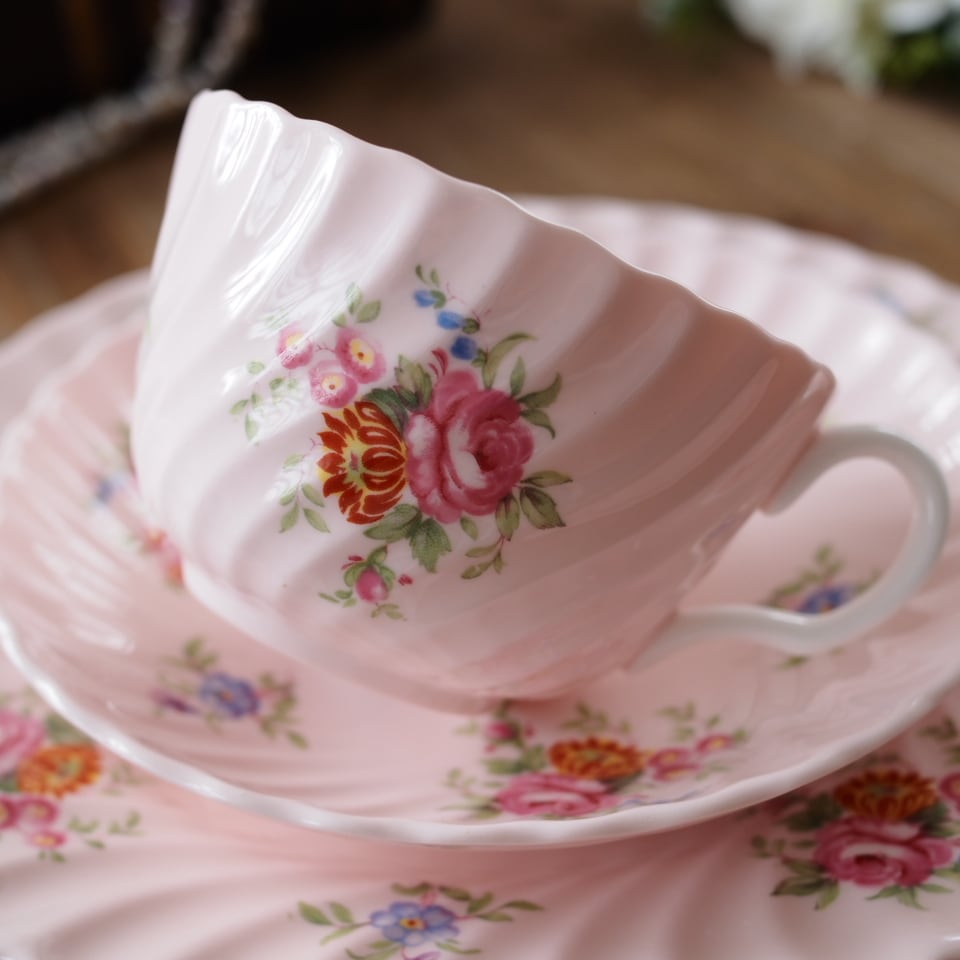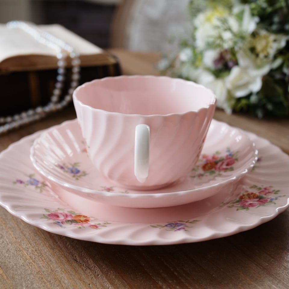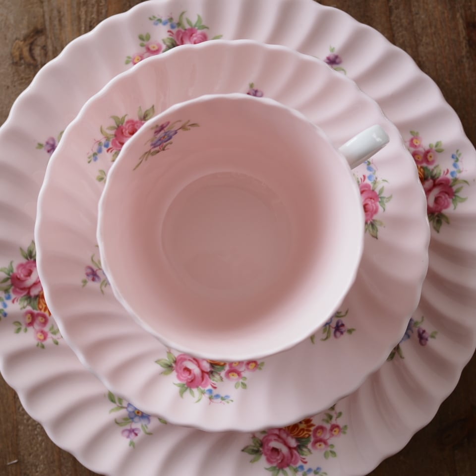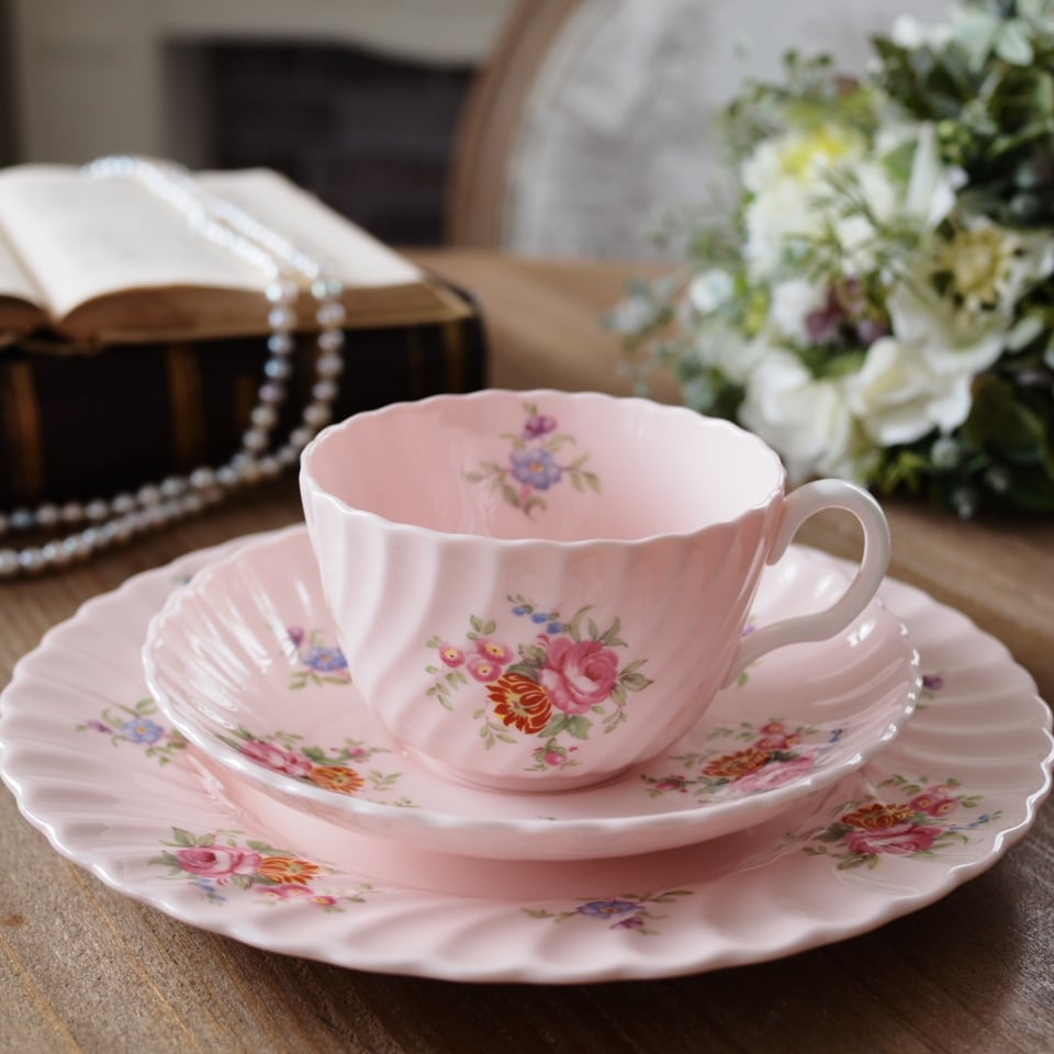 【SALE】英国ミントン ロゼッタ パステルピンクが可愛いトリオ カップ&ソーサー