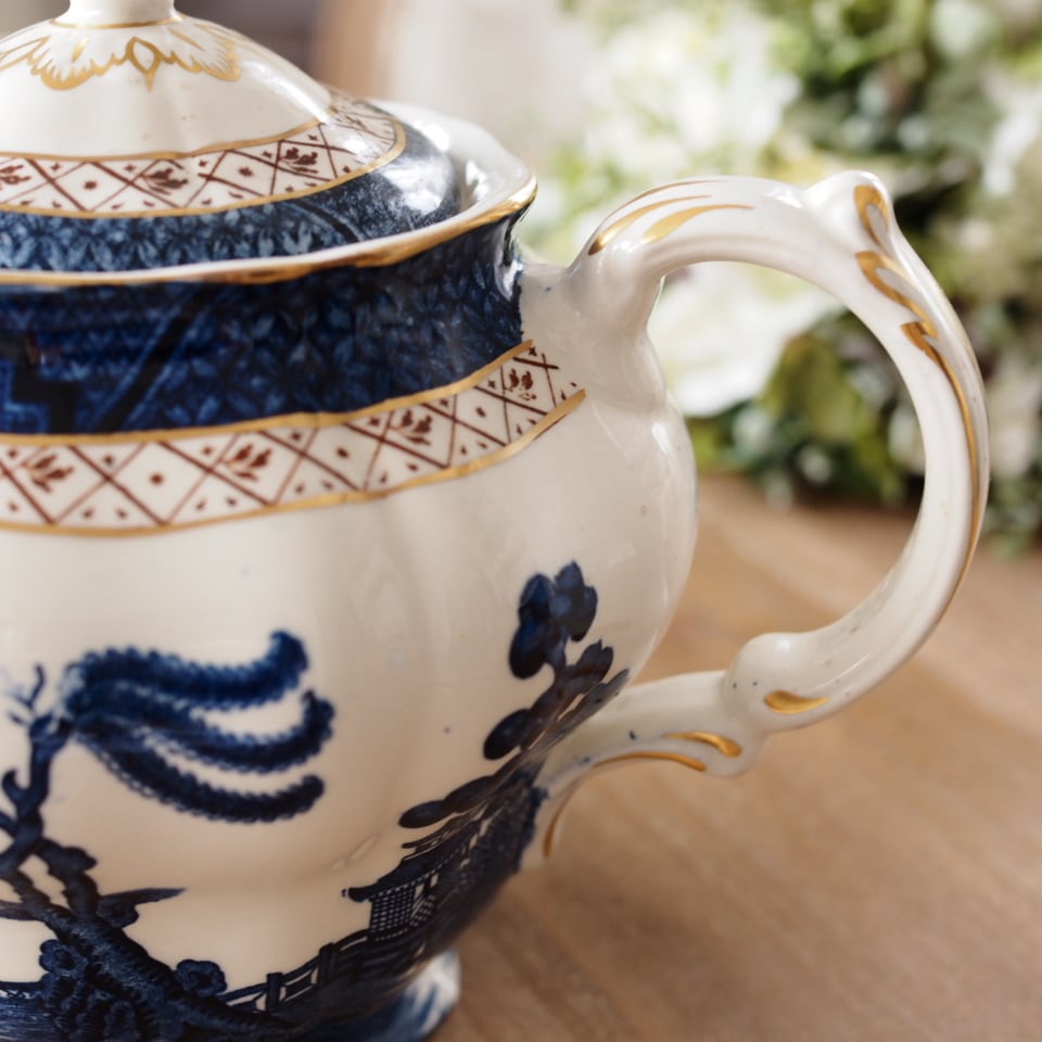 英国ブース社リアルオールドウィロー ティーポット アンティークブルー&ホワイト