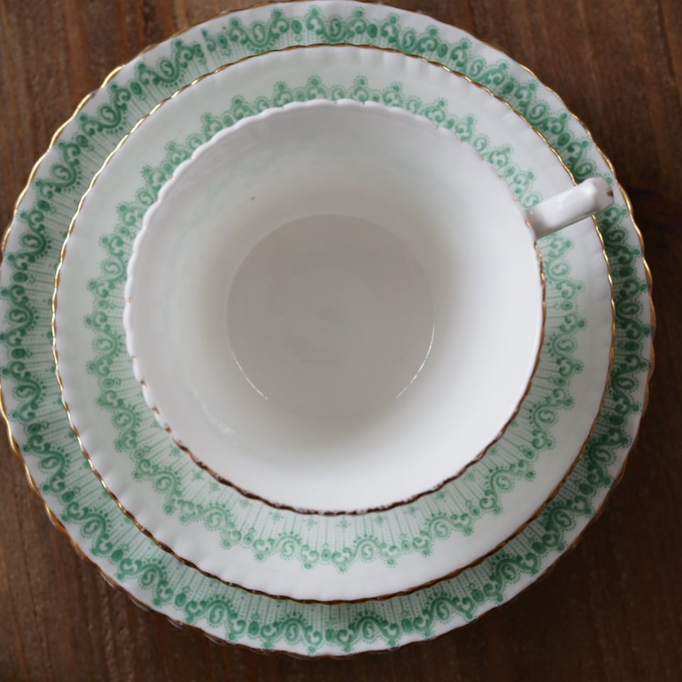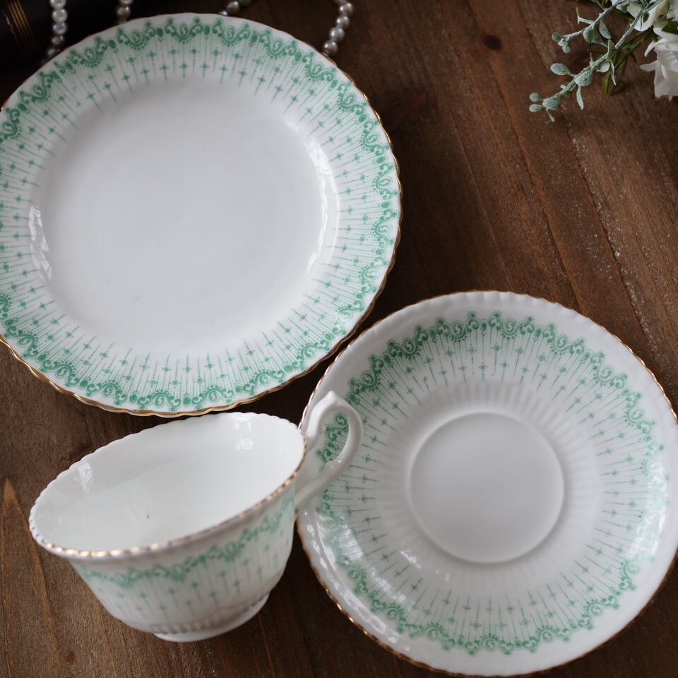淡いグリーンの絵柄がふんわりとしたした雰囲気のとても素敵なお品です。