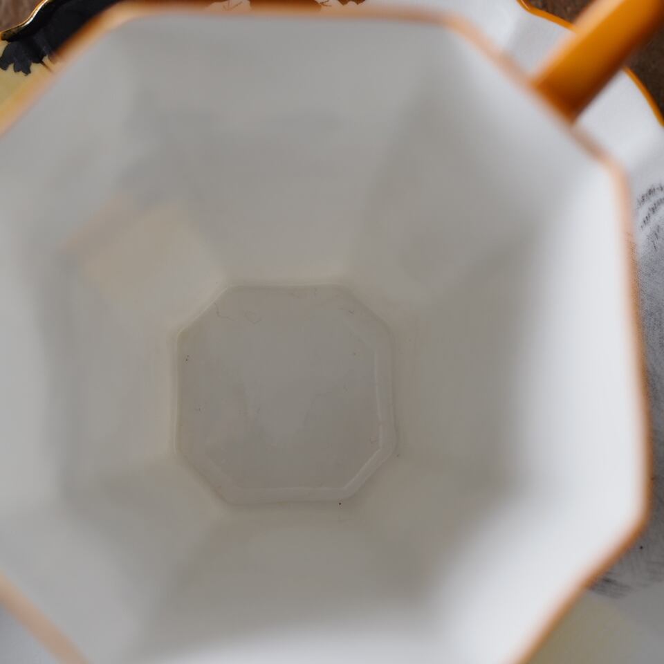 シェリーらしい薄く繊細な磁肌、軽やかな持ち心地、花びらのように波打つ優美なシェイプも魅力。