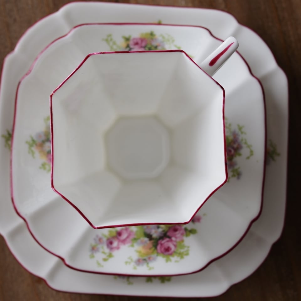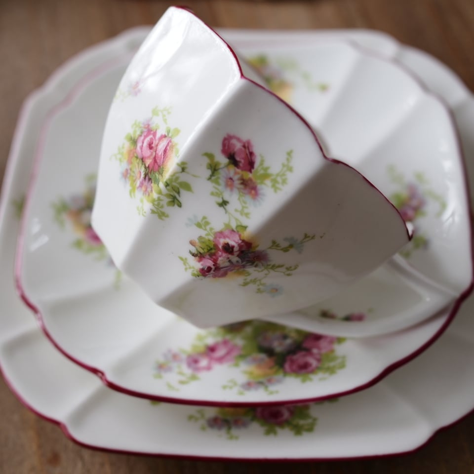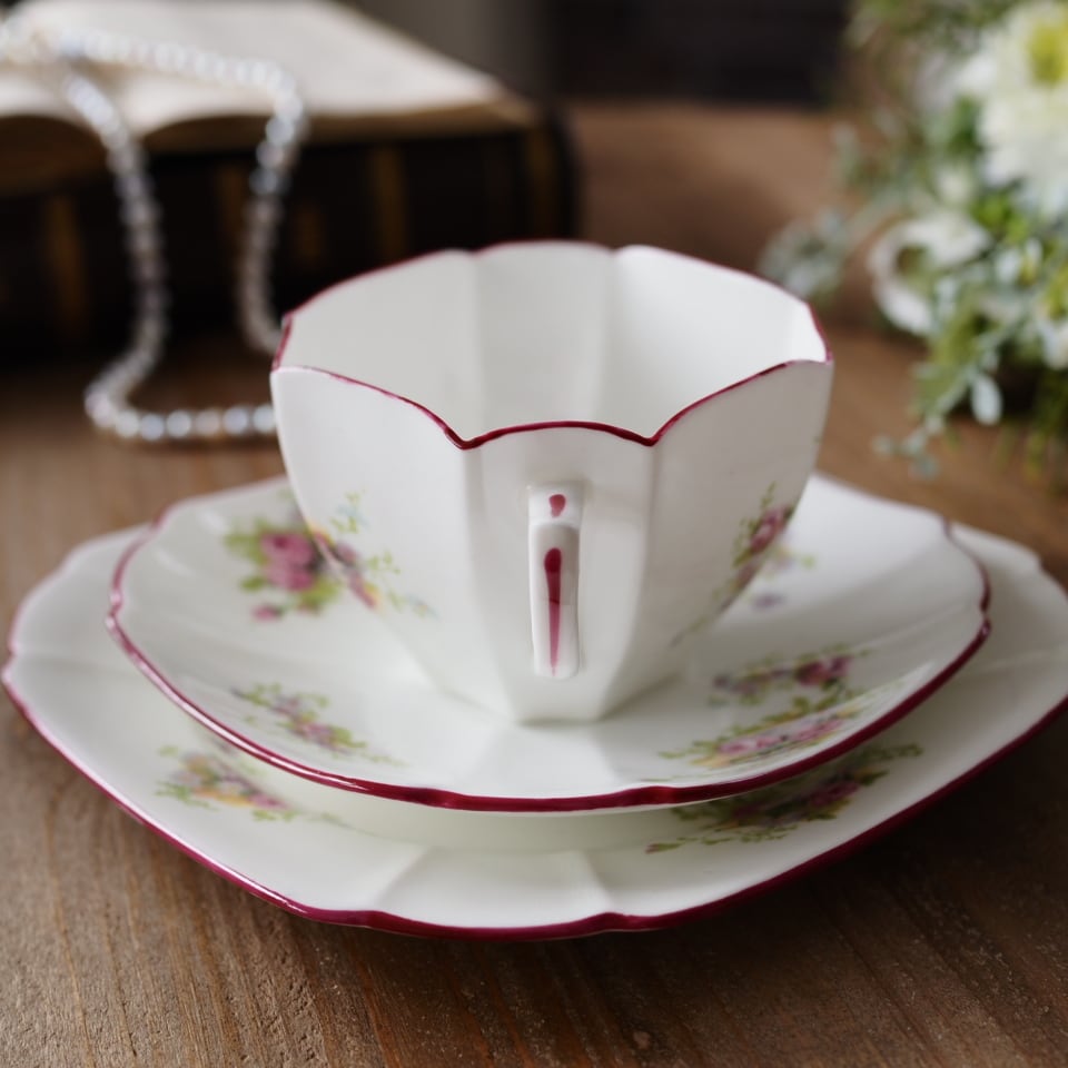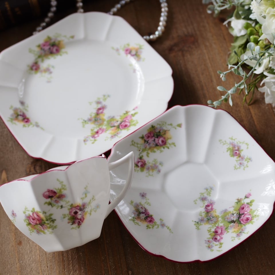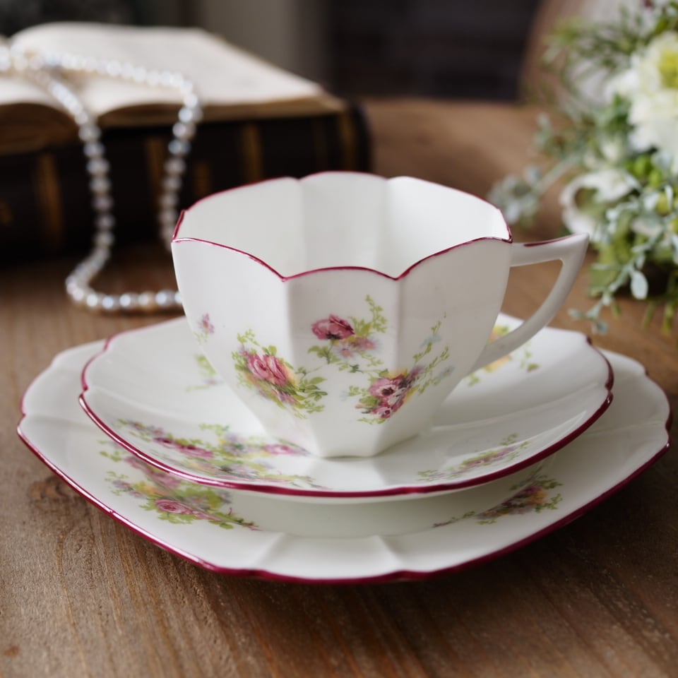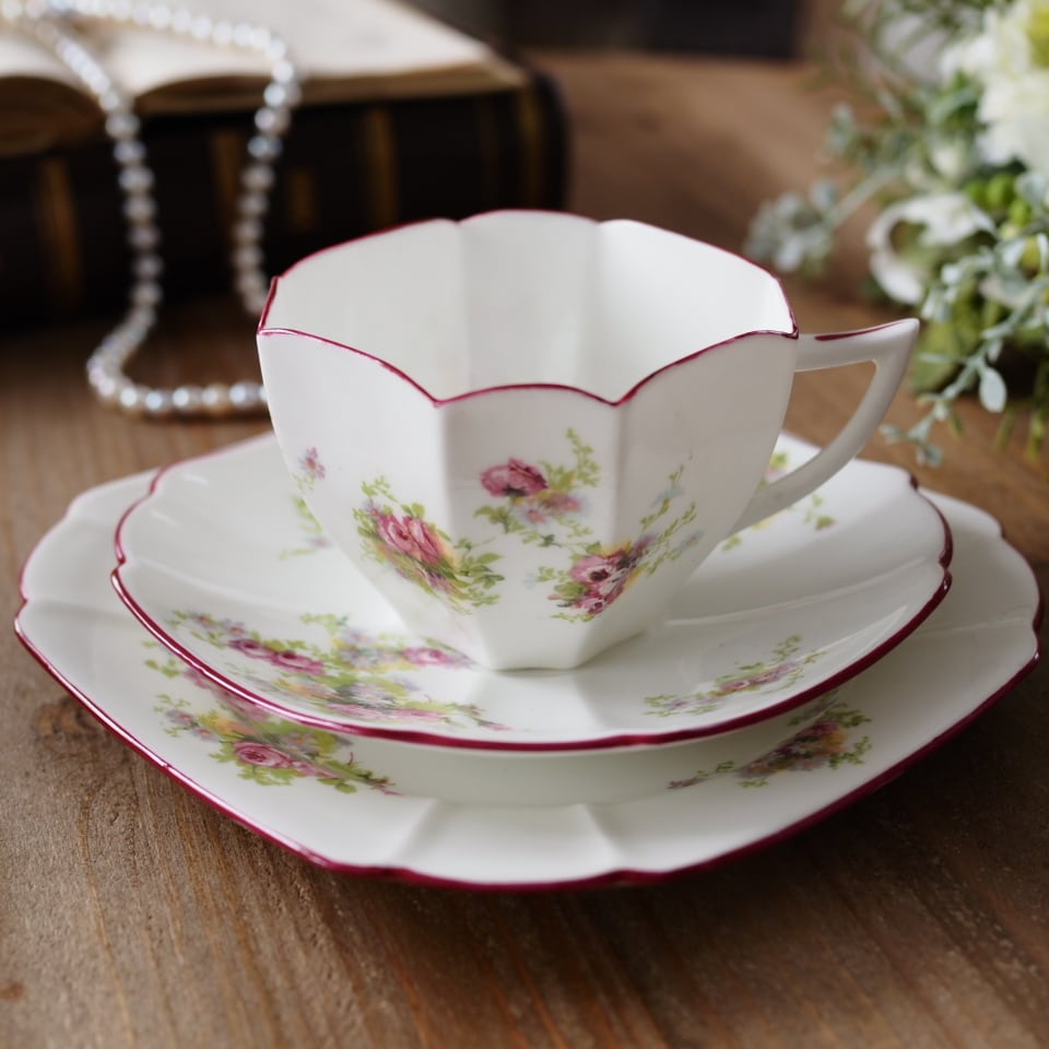 英国シェリー 可憐な薔薇が素敵なDainty Rose トリオ カップ&ソーサー