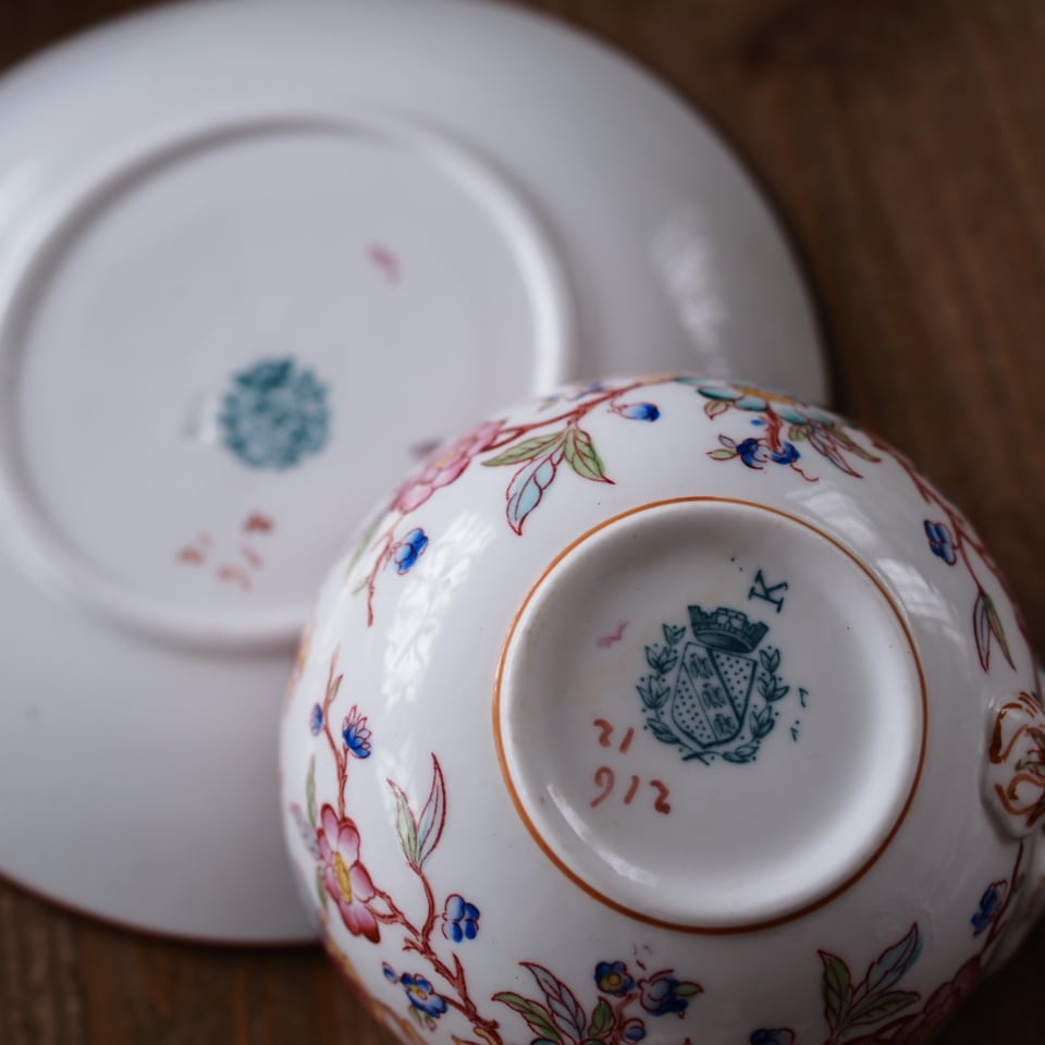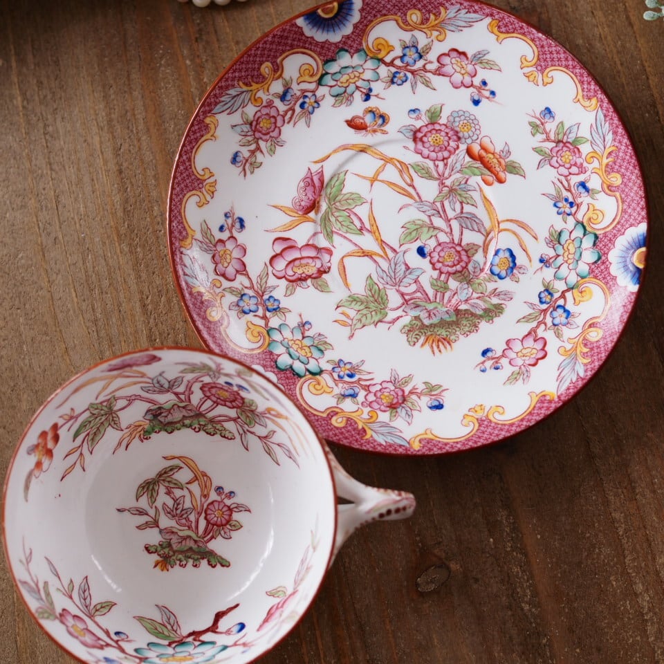 フランスサルグミンヌ窯製・イギリスMintonパターン カップ&ソーサー