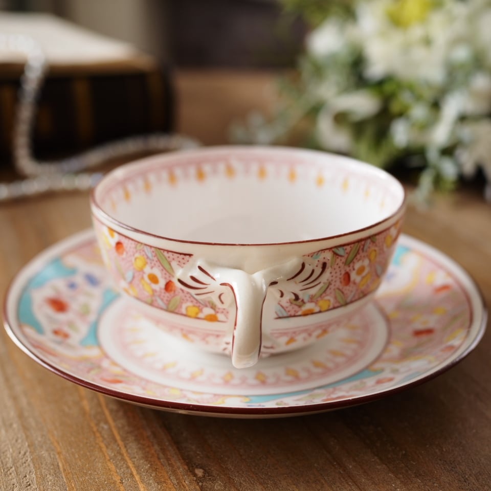 フランスサルグミンヌ窯製・イギリスMintonパターン カップ&ソーサー